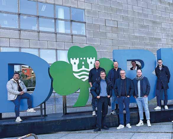Wahre Dartfans in Dublin: (v. l.) Thomas Schiefer (Displaynd), David Lehwald (Radio P. O. S.), Fabian Scholz (Komma,tec), Laura Düser (SOLUM), Deniz Üstün (e-sytems), Chris Wimmer (Acer Being Signage), Dirk Bürger (SOLUM), Volker Scharnberg, Florian Kinscher & Justus Grüter (ITZ Display Solutions), Michael Gordalla (l. v., Heyden-Securit) und Zan Bazika (SOLUM)