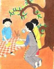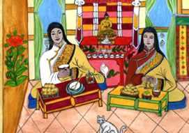 ཀས་དུས་གཅིག་ལ་བཙོག་པ་བཏང་བ་དང་། མོས་རང་གི་བུ་མོའི་ཆུ་གདན་