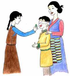 ལིམ་བུའི་ཁུ་བ་ཐིགས་པ་འགའ་བྱམས་པའི་ཁའི་ནང་དུ་བླུགས་པ་