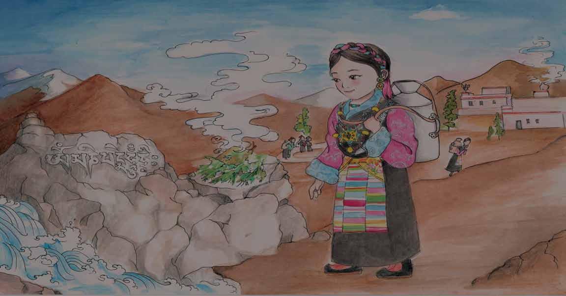 ཨ་མ་སྒྲོལ་མས་ཆུ་བན་དང་བསང་རྫས་འཁྱེར་ནས་ཆུ་ཕུུད་ལེན་དུུ་ཕྱིིན་