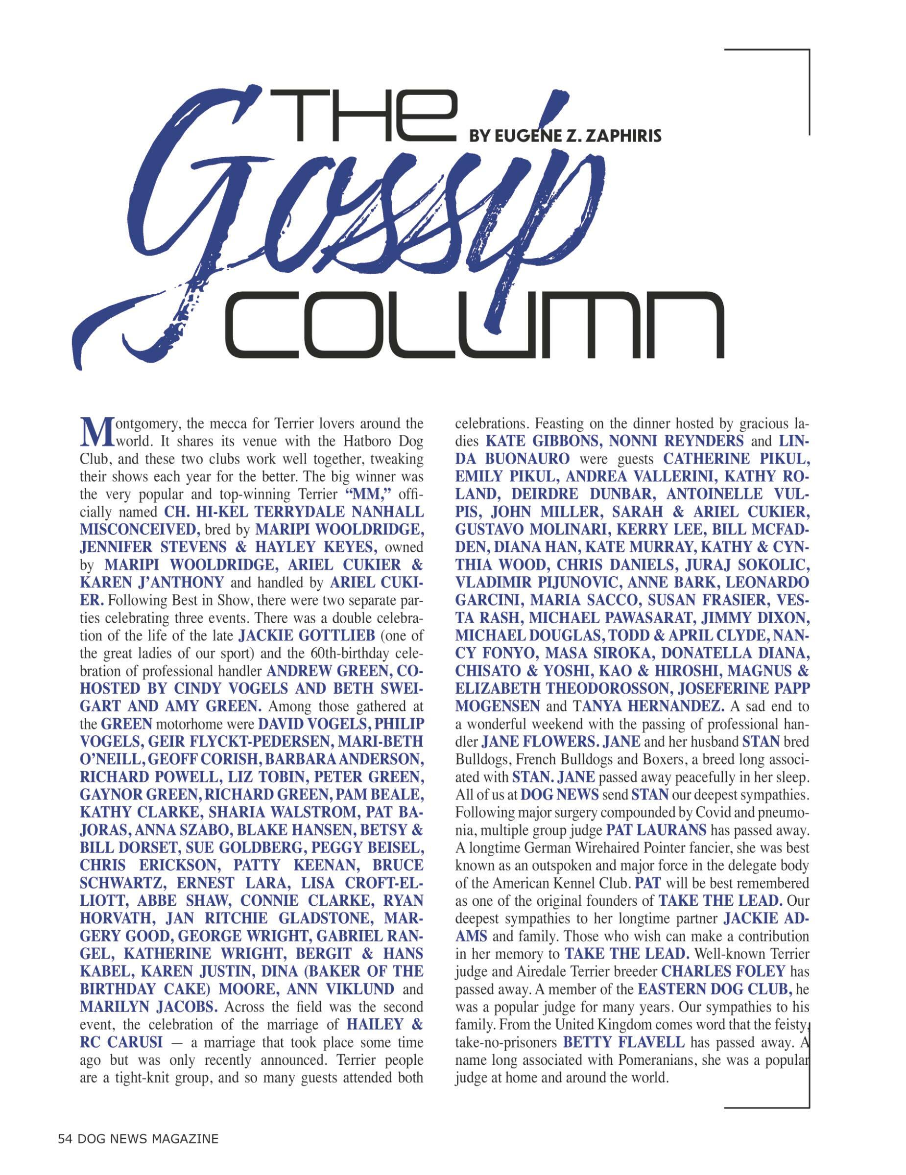 54 The Gossip Column By Eugene Z. Zaphiris