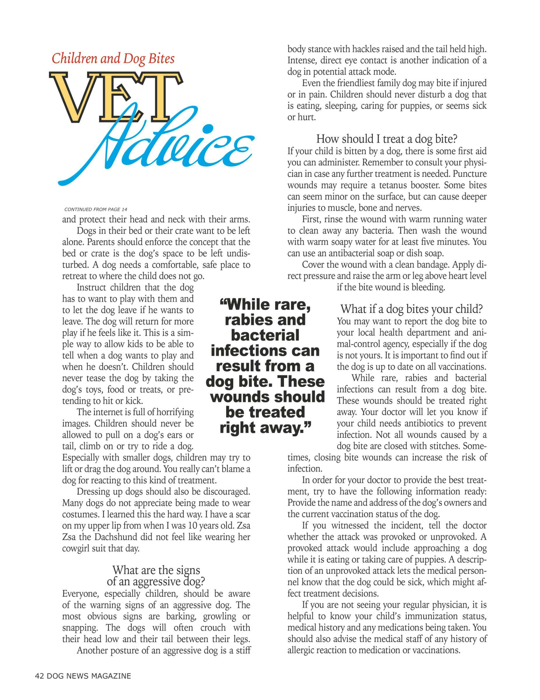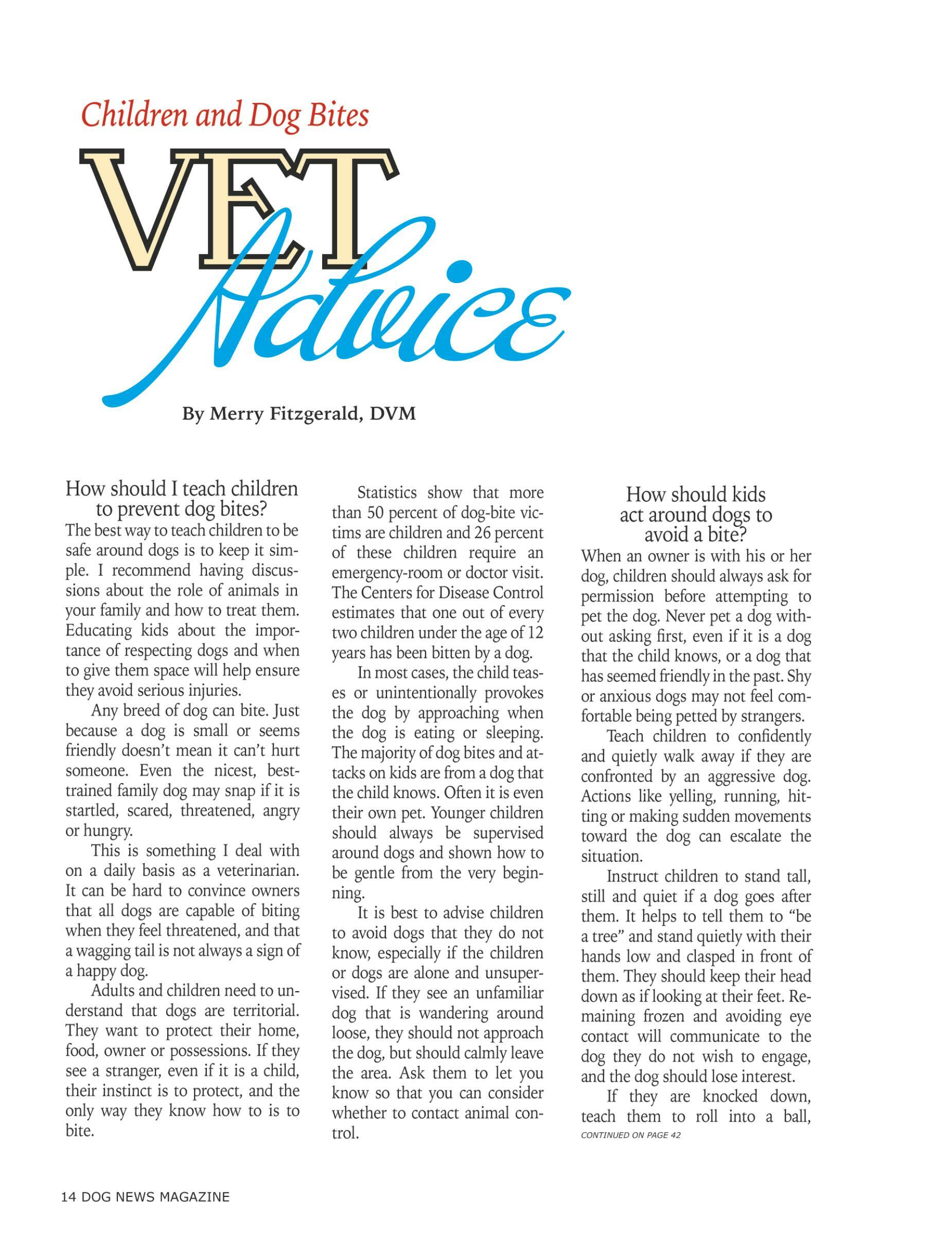 14 VET ADVICE Children and Dog Bites By Merry Fitzgerald, DVM