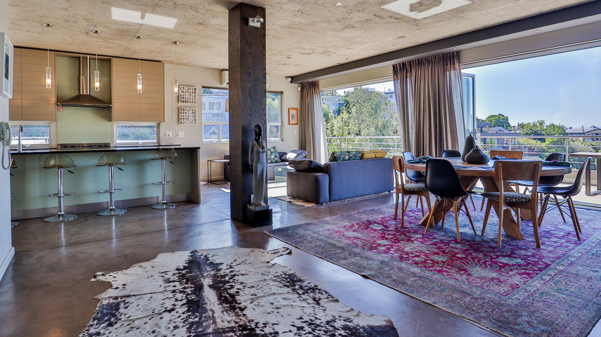 RONDEBOSCH VILLAGE - R27,000 MONTHLY - LOVELY APARTMENT WITH VIEWS This spacious, fully furnished 4 bed apartment offers comfortable living with an open-plan lounge & kitchen area leading onto a balcony with beautiful views.