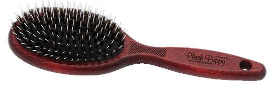 A finishing/styling brush for softer to a lighter density double coats Porcupine pins will remove tangles and loose coat. Dialon pins easily get through the coat while the 100% black boar bristles have a gentle yet smoothing effect of the coat. The perfect finishing brush to use on ¾ dry coats, maximising contact with the coat to finish to the dry style and result you require. This brush has the ability to flatten, straighten and reduce wave to coats when drying.