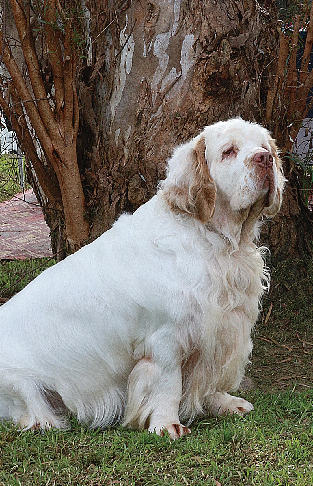 Clumber Spaniel is notable for his facial expression, large feet and thick, low maintenance, soft to touch, white coat. The breed prefers to learn through observation and will copy quickly, as he has a great desire to interact with and please his owner, plus revels in positive reinforcement techniques.