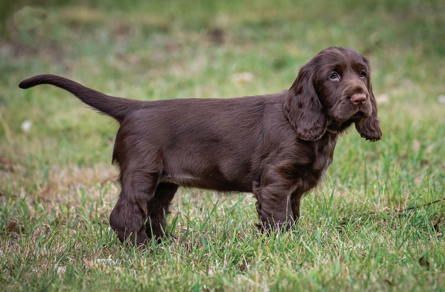 The sweet and sensitive Field Spaniel is famously docile, but vigorous and game for anything when at play or in the field. These close cousins to Cocker Spaniels and Springer Spaniels may be small in number, but their charm is enormous. Field Spaniels bear a family resemblance to Cocker, Springer, and Sussex spaniels. The distinctive glossy coat is either black, some shade of liver, or combinations of the two. The long, feathery ears frame a facial expression conveying a grave, gentle intelligence. Field Spaniels are sweet, sensitive souls with just enough independence to make life interesting. They are trustworthy with kids, tolerant of their fellow mammals, and responsive to training. 2.