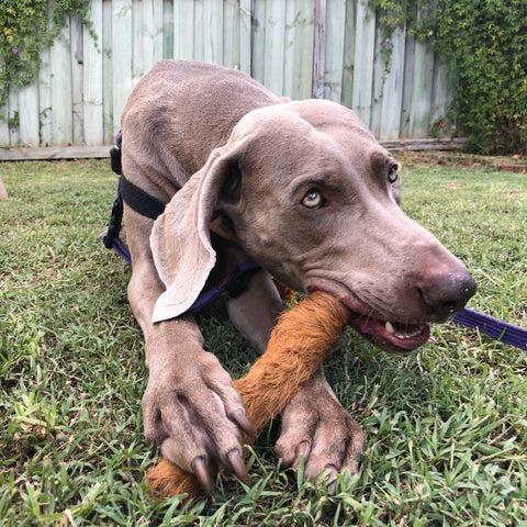 Bones and chews both clean teeth and provide mental enrichment. Their hardness scrapes plaque from teeth, whilst the saliva generated from the prolonged chewing action helps to wash away food particles and neutralise acids.