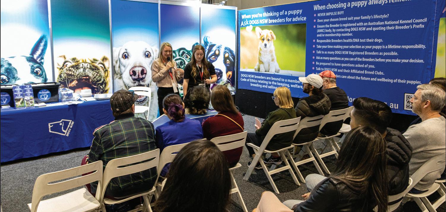 The Dog Lovers Show finally returned to Sydney in August this year after a three year absence due to COVID. Approximately 27,000 members of the public were in attendance this year, which was a slight drop in numbers of 3,000 from 2019, but the fun, activities, talks and exhibitors were in abundance. DOGS NSW were once again in attendance with their Information stand and breed talks with the ‘Ask the Breeder’ stand. Please turn to pages 10-13 for coverage of the event.