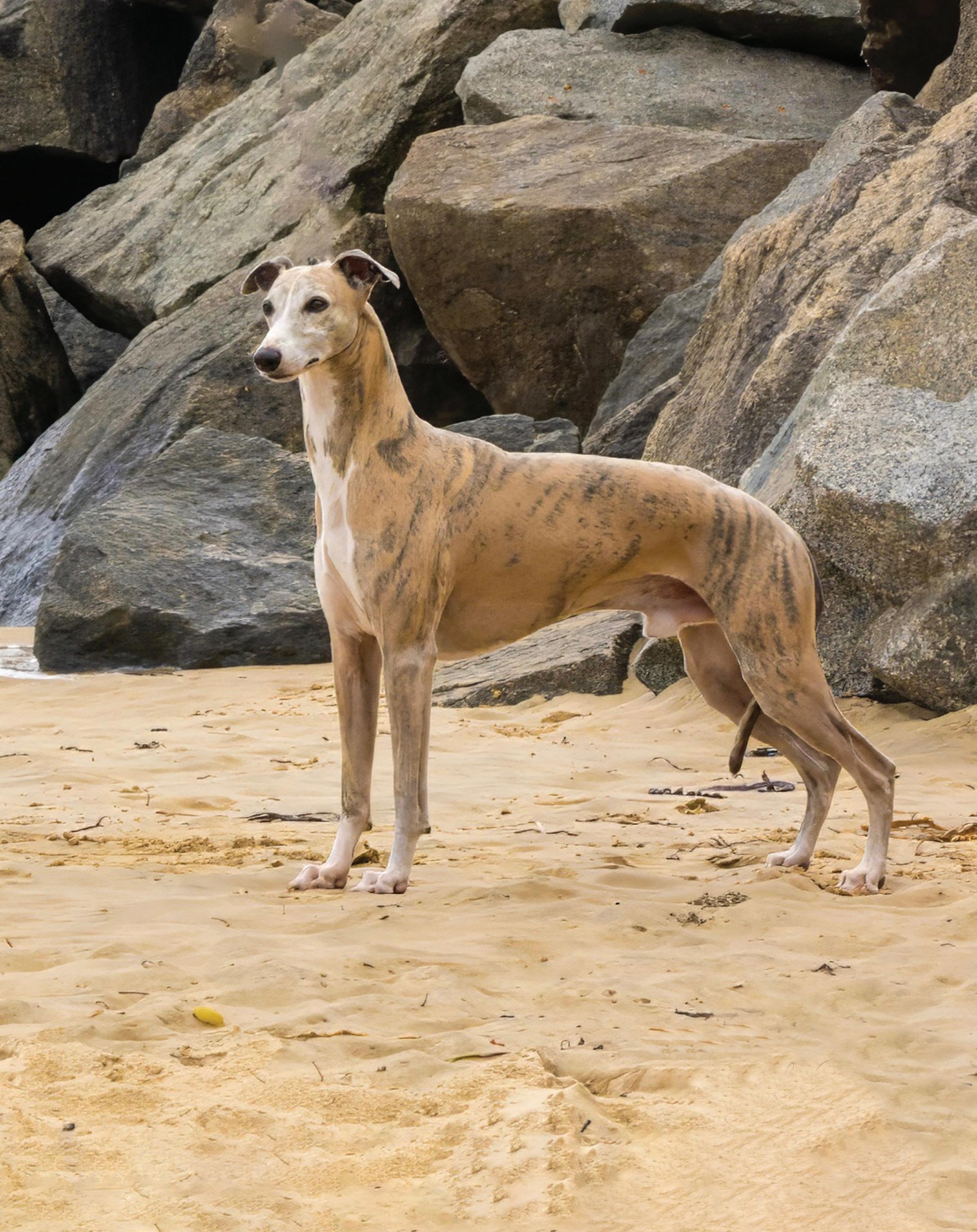 Whippets are a different shape to Greyhounds and Italian Greyhounds. A Whippet should have a long, lean head and a body with a series of graceful curves. Whippets are suitable for everyone: singles, couples, families of any size and owners of any age. They can happily live in houses with yards, townhouses and even apartments.