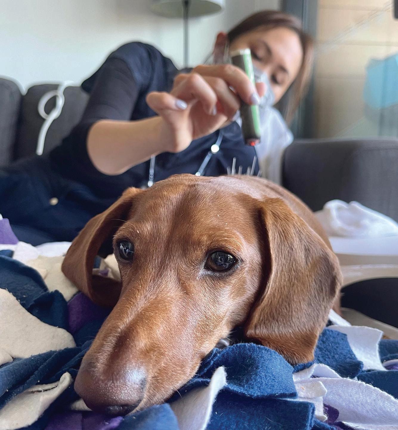 “I started the sessions about 8 weeks after Eddy was initially diagnosed with IVDD and have seen many benefits so far. If his back is sore, it can be difficult for him to get comfortable lying down and he can be quite restless and start pacing. But after sessions, I notice he is more relaxed, restful and more comfortable lying down. The reason for this is that acupuncture helps reduce pain, inflammation and swelling on the spine. He also needs NSAIDs for less time. A smoother, faster recovery helps him get back to his normal life sooner which is good for his mental health, too.”