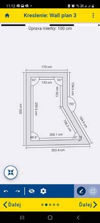 Pre zvislé konštrukcie jednoducho ťahaním prsta po displeji načrtnite steny. Rozmery sa ukazujú automaticky.