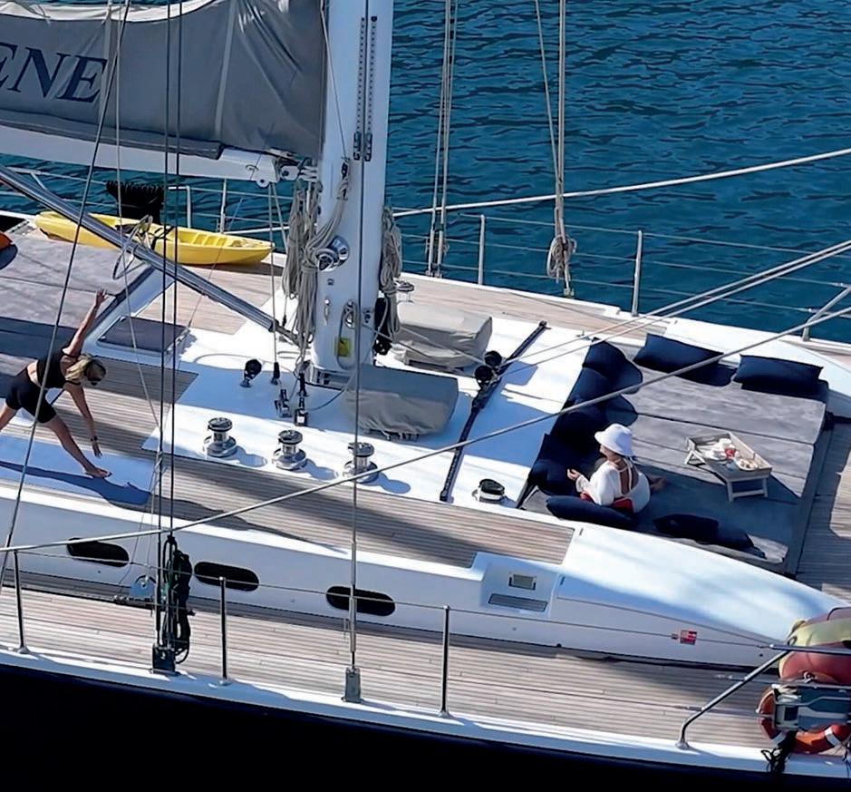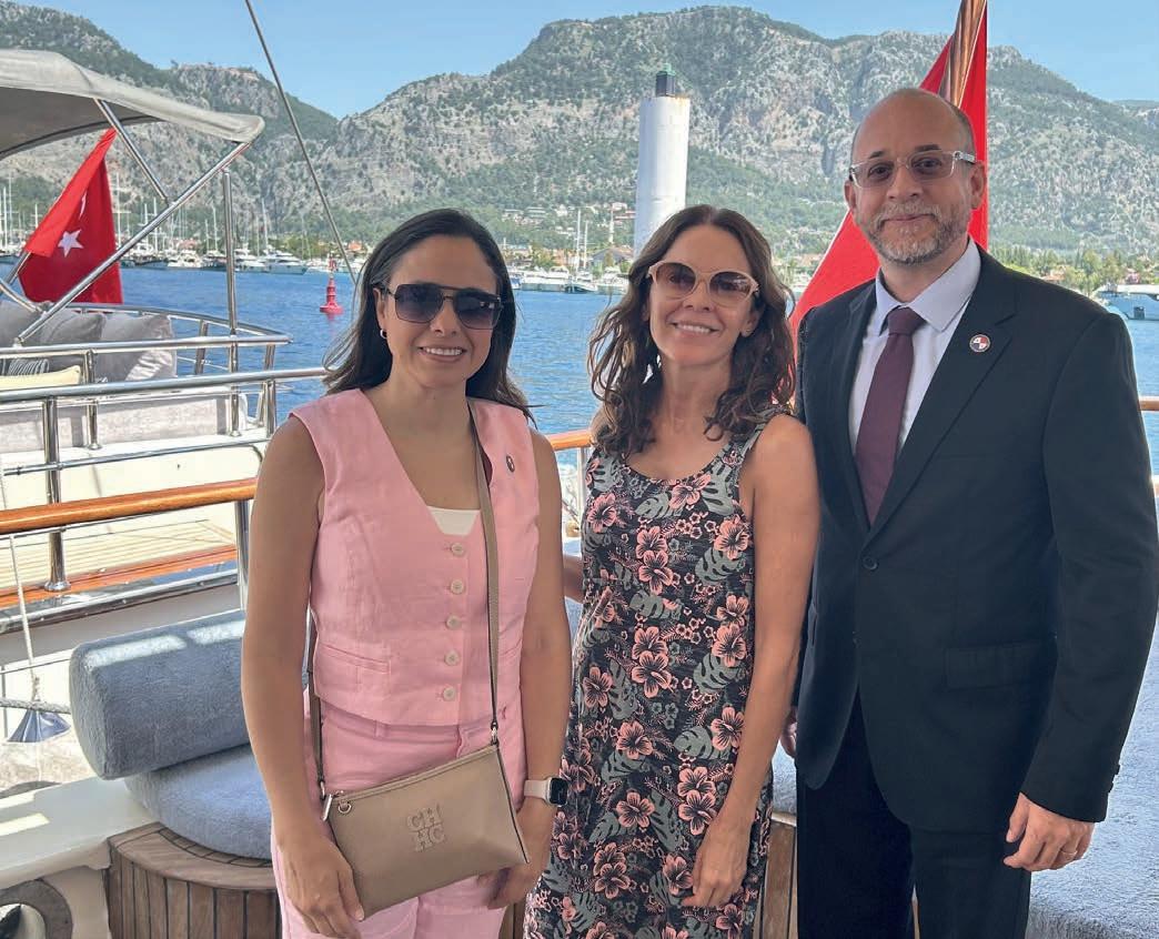 Photo 1: YTM Editor & Publisher Dolores Barciela in Göcek, Türkiye, aboard luxury charter yacht YAZZ, featured in this issue. Photo 2: With Her Excellency Karina Cecilia Arias Fonseca, Ambassador of Panama to the Republic of Türkiye, and Mario A. Julio G., Economic & Commercial Counselor of the Embassy of Panama in Türkiye.