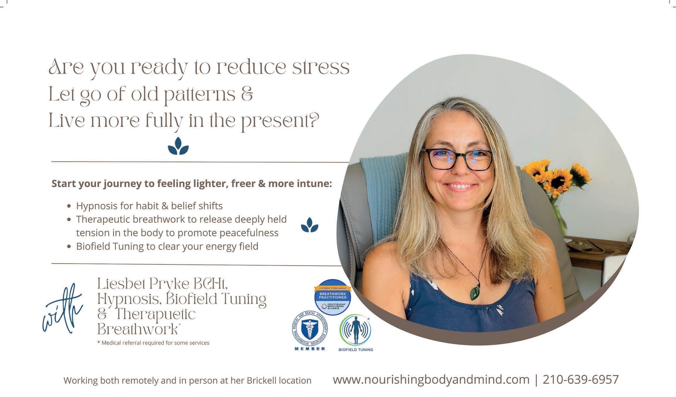 hiding beneath it. The breath can unlock old patterns, release tension from the body, and shine a light on beliefs that quietly hold us back. What I love most about this work is how similar it feels to hypnotherapy. As the breathing rhythm takes you into an altered state, you begin accessing the subconscious mind — the place where lasting change can happen. Old beliefs and imprints start to surface, and with the right support, you can reset them in a profound and liberating way.