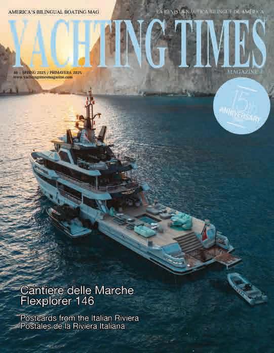 YACHTING TIMES MAGAZINE se publica dos veces al año por YACHTING TIMES MAGAZINE LLC., P.O. Box 491196, Key Biscayne, FL 33149, Tel/Fax: +1-786-237-7830 Copyright 2025 por YACHTING TIMES MAGAZINE. Todos los derechos reservados. Prohibida la reproduccion total o parcial de los articulos, fotos y anuncios aparecidos en YACHTING TIMES MAGAZINE sin el consentimiento por escrito del editor. Se ha intentado ser preciso a lo largo de toda la revista, pero no podemos responsabilizarnos por errores u omisiones que puedan ocurrir. Tampoco asumimos responsabilidad alguna por los servicios o productos anunciados en nuestras páginas. Tanto las notas y fotos editoriales como las enviadas serán tratadas con cuidado, pero no nos responsabilizamos por pérdida o daño de las mismas. Las notas firmadas no necesariamente reflejan la opinión o el parecer del editor de la revista. Las afirmaciones en ellas consignadas, por lo tanto, corren por exclusiva cuenta del autor.