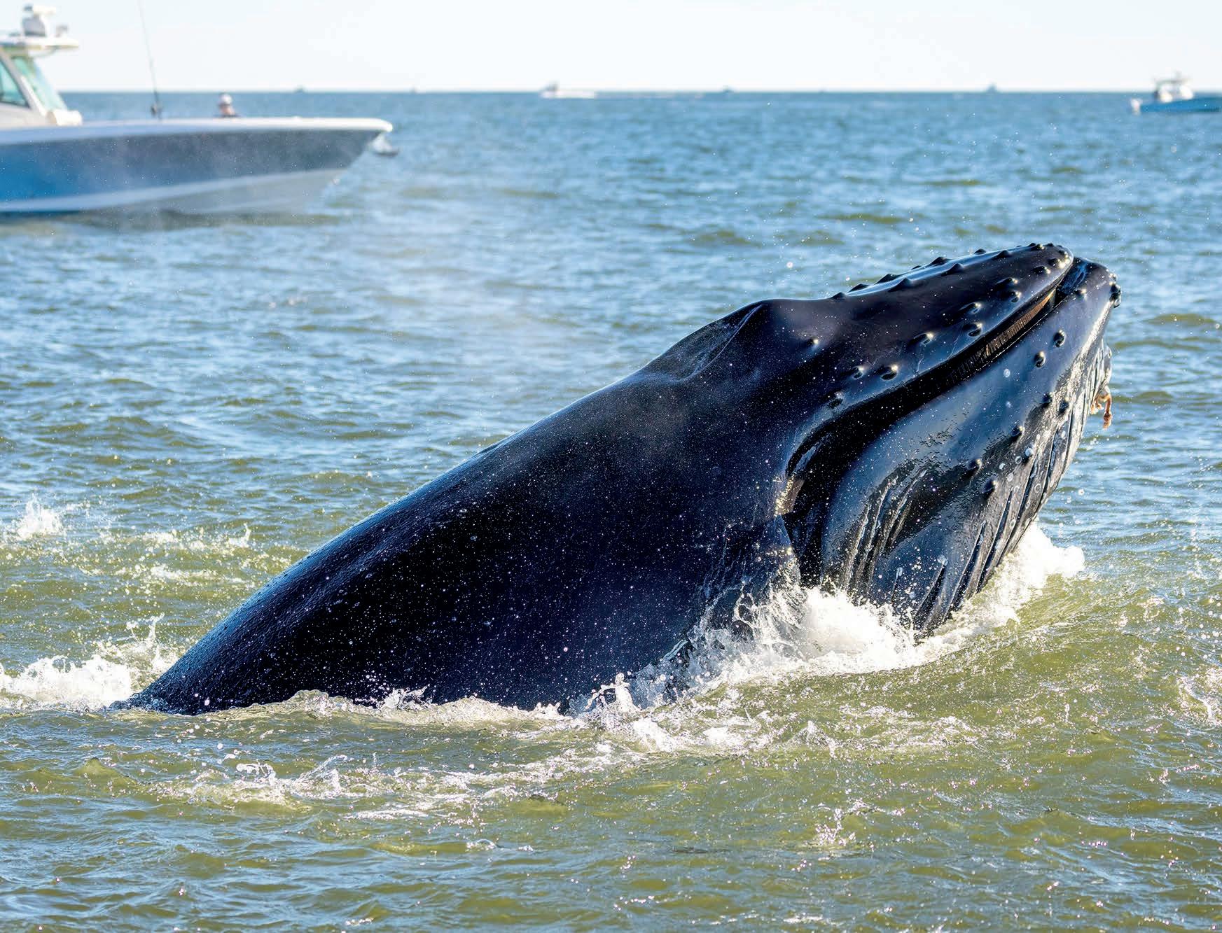 boaters, fishing gear and shipping traffic—creating dangerous conditions for whales and people alike. Vessel strikes and fishing gear entanglements are leading causes of whale deaths, threatening species from humpbacks to the critically endangered North Atlantic right whale.