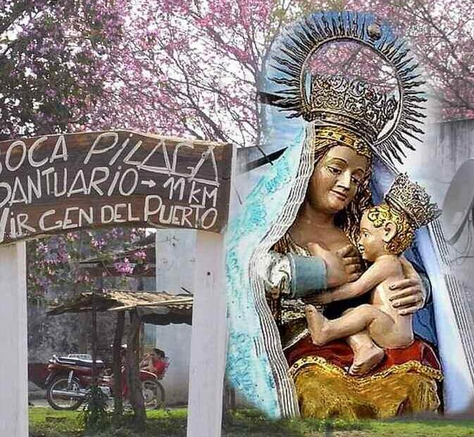 Desde aquella memorable g e s t a e n l a q u e u n a n u t r i d a d e l e g a c i ó n d e h o m b r e s y m u j e r e s , q u e r i d o s hermanos españoles, que viajar o n d e s d e P l a s e n c i a p o r t a n d o esta bella imagen y fueron recib i d o s p o r l o s f o r m o s e ñ o s , s e e n c u e n t r a N u e s t r a V i r g e n d e l Puerto con nosotros. Al principio, la imagen fue depositada en la Iglesia Catedral, donde permaneció hasta su traslado a la comunidad Boca Riacho Pilagá. En este bello lugar, en la m i s m a d e s e m b o c a d u r a d e l R i a c h o , M o n s . J o s é C o n e j e r o c o n s t r u y ó u n S a n t u a r i o e n e l que fue entronizada y coronada Todos los años, en esta fecha hombres y mujeres, niños y jóvenes, se reúnen para acompañarla en la tradicional caminata por el pueblo y en el paseo en lancha por las aguas del río Paraguay Es una costumbre ya arraigada a la que, año tras año, atrae a más peregrinos que se acercan a pedir la intercesión de la Santísima Madre