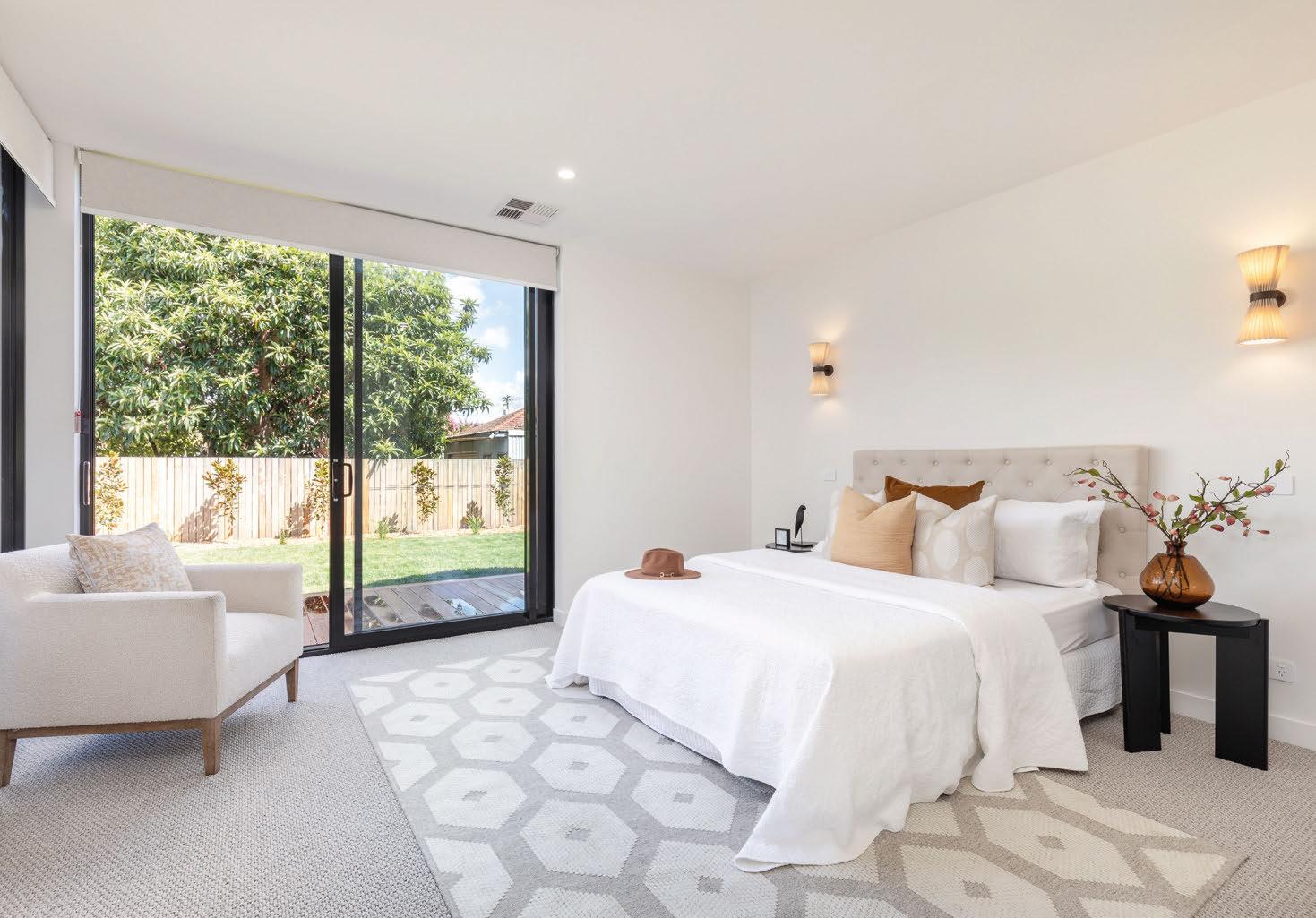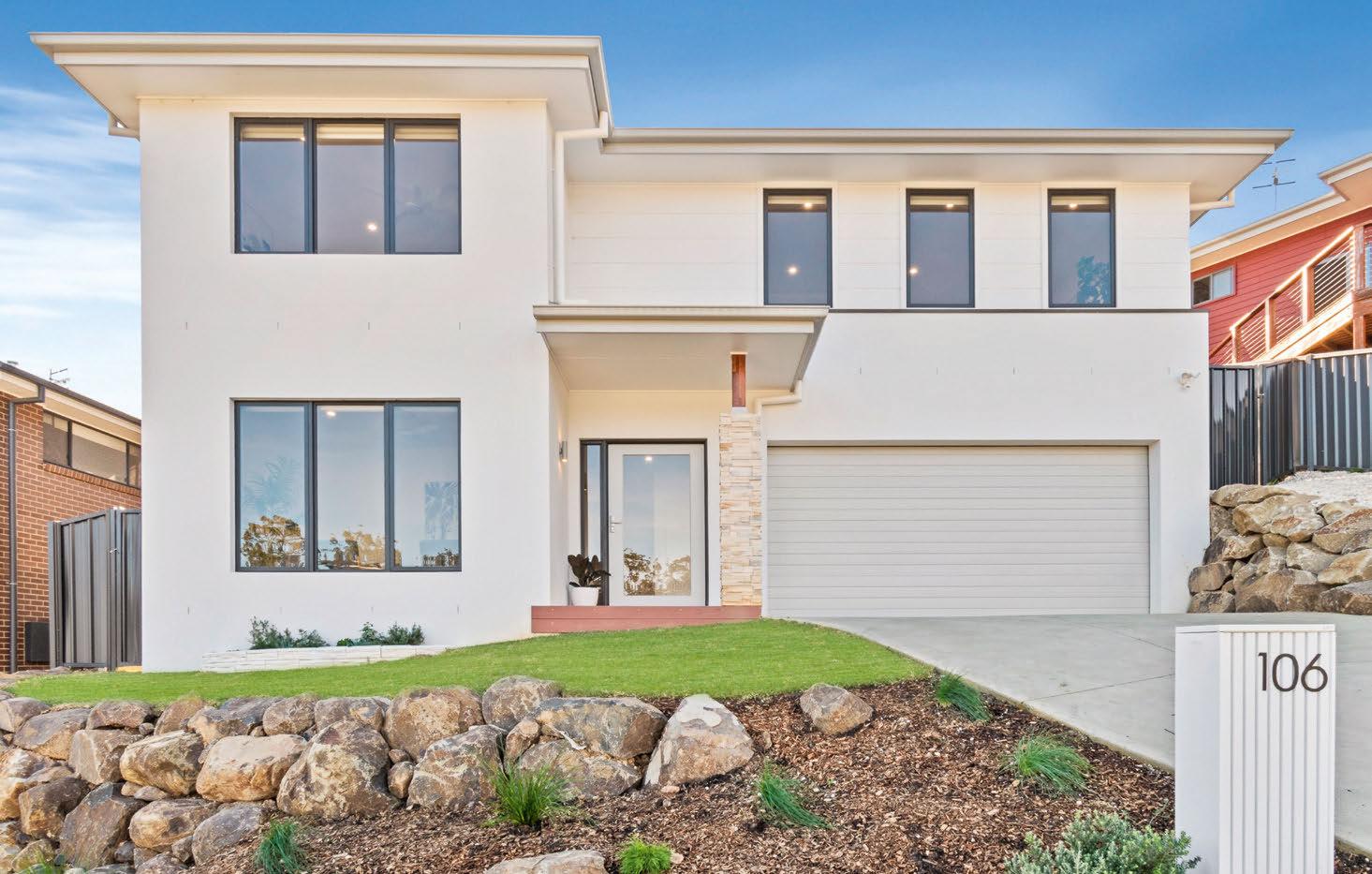 The frst thing you’ll notice about this modern home in Chifey is the light. High ceilings, oversized windows and glossy tiles will dazzle. Set over two storeys, thoughtful design elements, such as a separate lounge room at the front of the home, a study nook, butler’s pantry and lots of built-in storage, make sense for family living. The downstairs bedroom has a walk-in wardrobe and an en suite, ideal for guests or as a second main-bedroom suite.