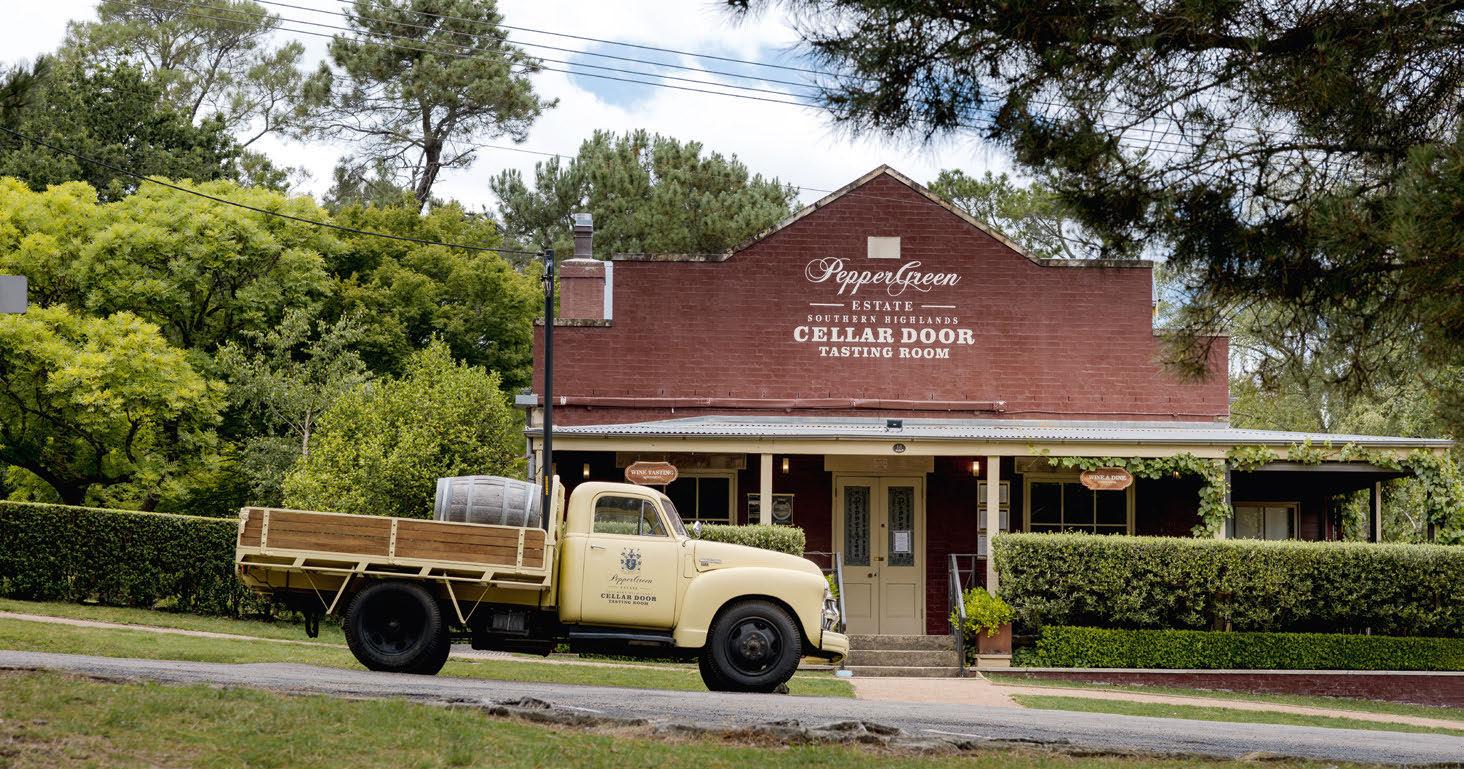 Above and left: Berrima was established in 1830 and retains many heritage-listed buildings, from the old jail to inns and cottages. Far left: The Berrima General Store & Cafe serves “local produce, beautiful food and grocery essentials”. Below: The PepperGreen Estate Cellar Door is a tasting room and restaurant on Market Place.