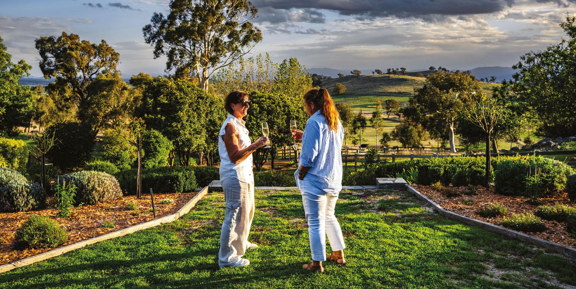 While Bowral sits just 10 minutes away, Berrima holds its own on the foodie front. Vineyards set the pace, from the cellar door and olive oil tastings at PepperGreen Estate to Bendooley Estate, where lunches unfold by the fre and dinners drift onto the terrace. The Surveyor General Inn anchors tradition, housing Bistro 1834 for classic pub fare. For something more refned, Eschalot ofers an intimate dining experience within a heritage building.