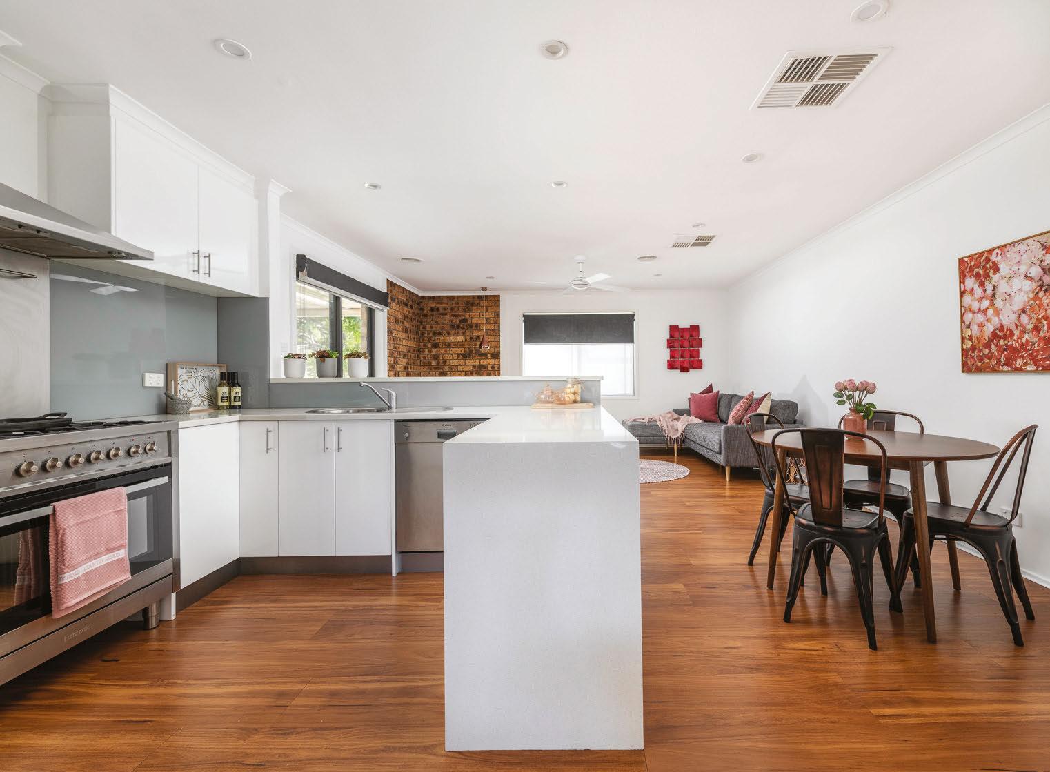 This could be the smartest buy in Farrer, ideal as a frst home or investment property. Set on an 877-square-metre corner block, there’s potential for expansion. Inside, it’s fresh and bright, with timber foors and a freplace in the living room. Outside, established gardens and a paved area will appeal to families. Schools, shops and transport links are all nearby. “Secure a move-in-ready home in one of the Woden Valley’s most soughtafter suburbs,” the agent says.