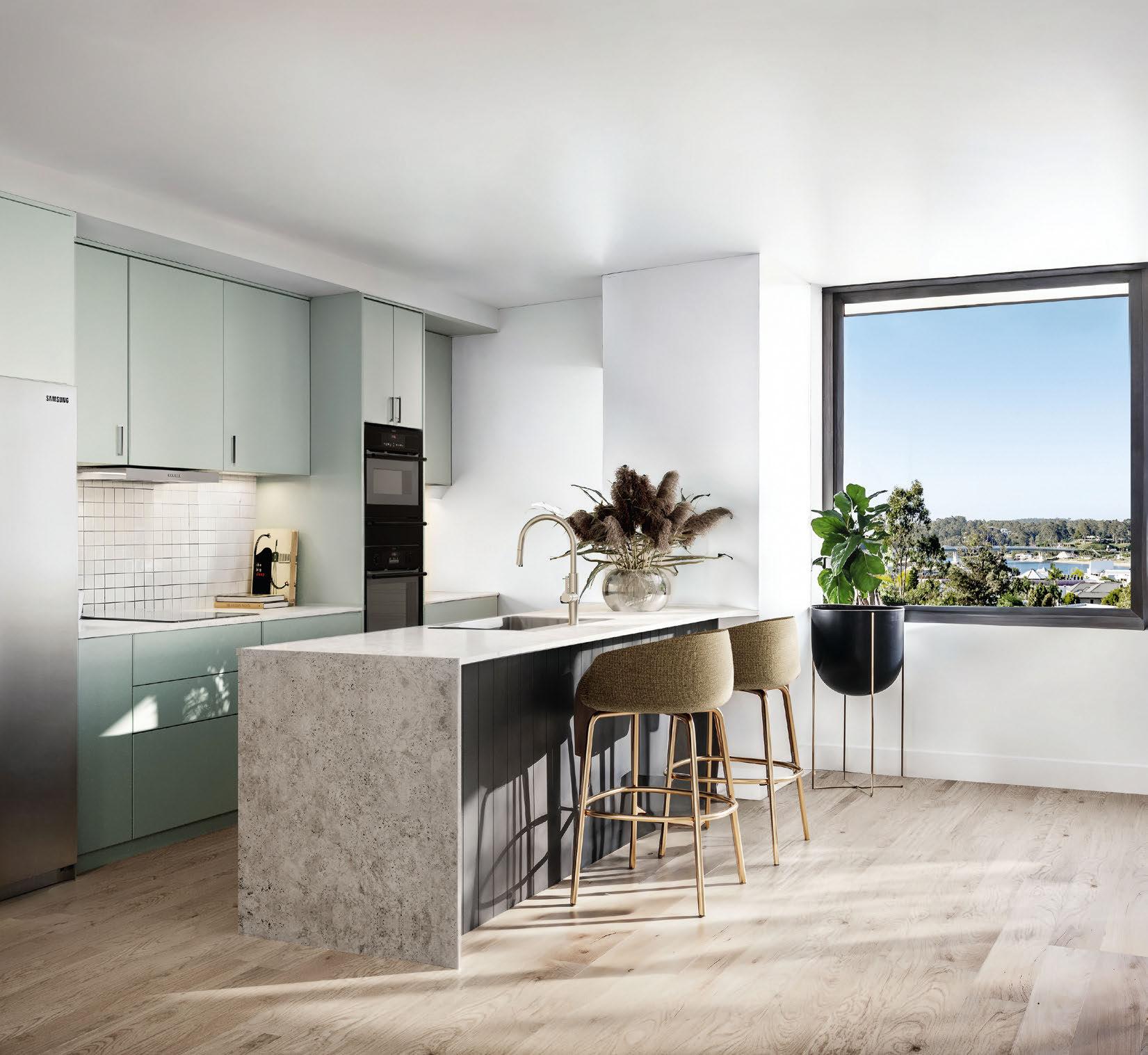 “The apartments are designed with living in mind, so they’re all oversized with high-end fnishes, from the living spaces to the bedrooms,” says Andrew Metcalf of The Property Collective.