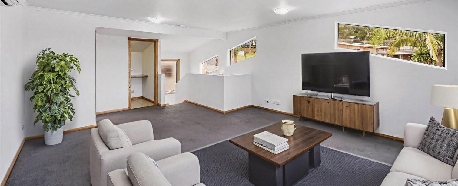 Fully renovated, this three-bedroom, two-storey Tathra home is a relaxed coastal base with modern design. Light-filled interiors centre on a sleek kitchen, while a hardwood deck captures ocean and bush views. A separate, self-contained studio adds flexibility. The beach and village are minutes away.