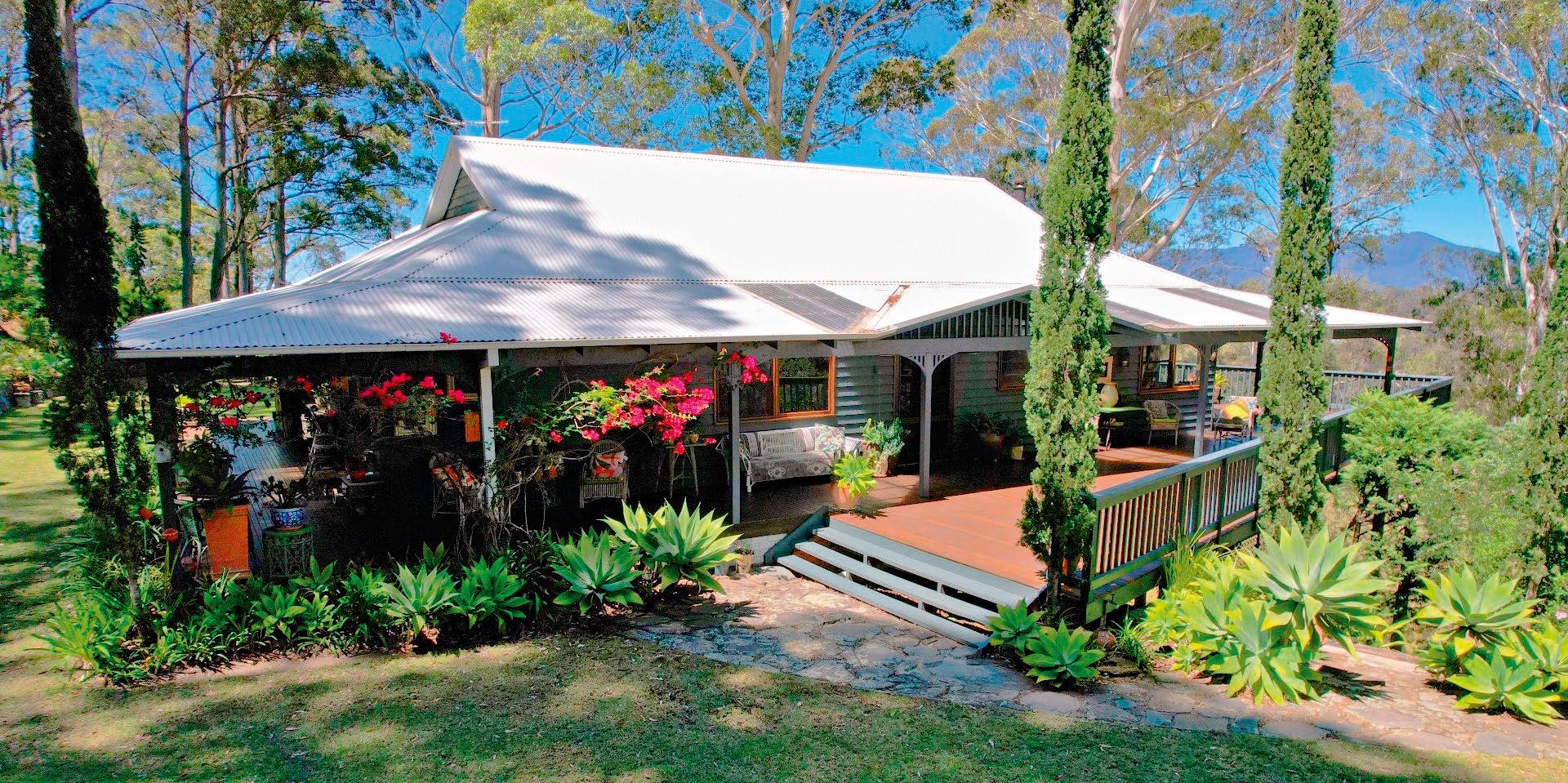 Wake to the sound of birdsong and the scent of eucalyptus at this rural retreat just six minutes from the sands of Narooma. This beautifully crafted timber-and-pole-frame house sits on nearly three hectares, with the potential for grand gardens, hobby farming or just relaxing in the tranquil bushland. Cathedral ceilings with exposed timber beams, wide verandahs, a cosy wood freplace and a chef’s kitchen make for a truly magical hinterland hideaway.