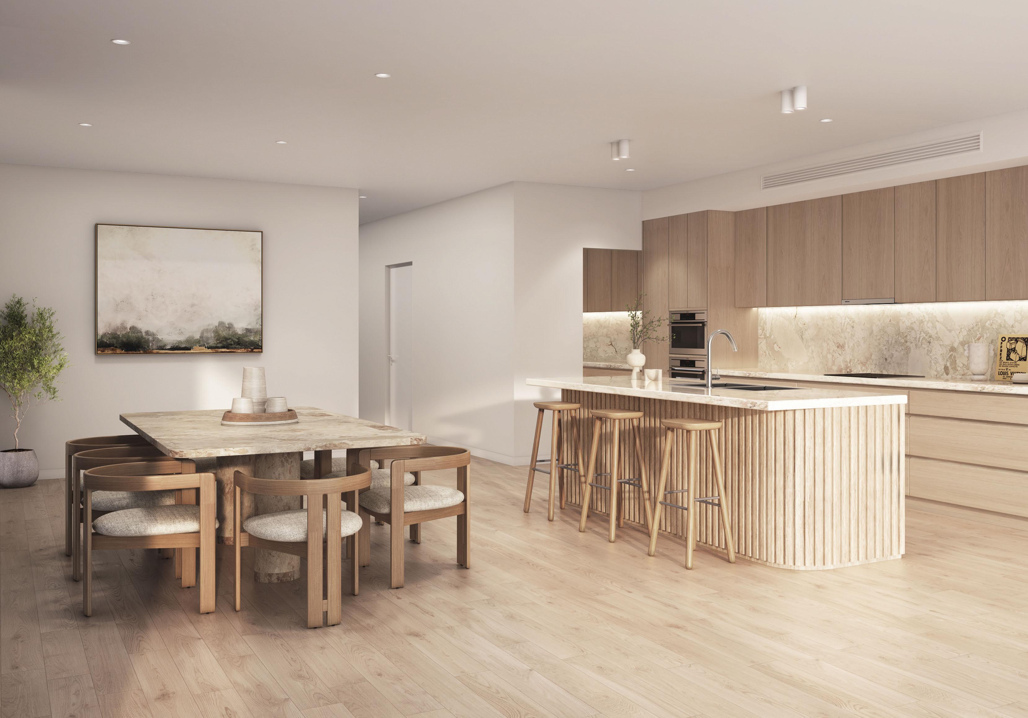 Designed by Walsh Architects and Raw Process Design, the architecture and interiors embrace soft curves, coastal tones and natural textures, taking their cues from the development’s surrounding landscape.