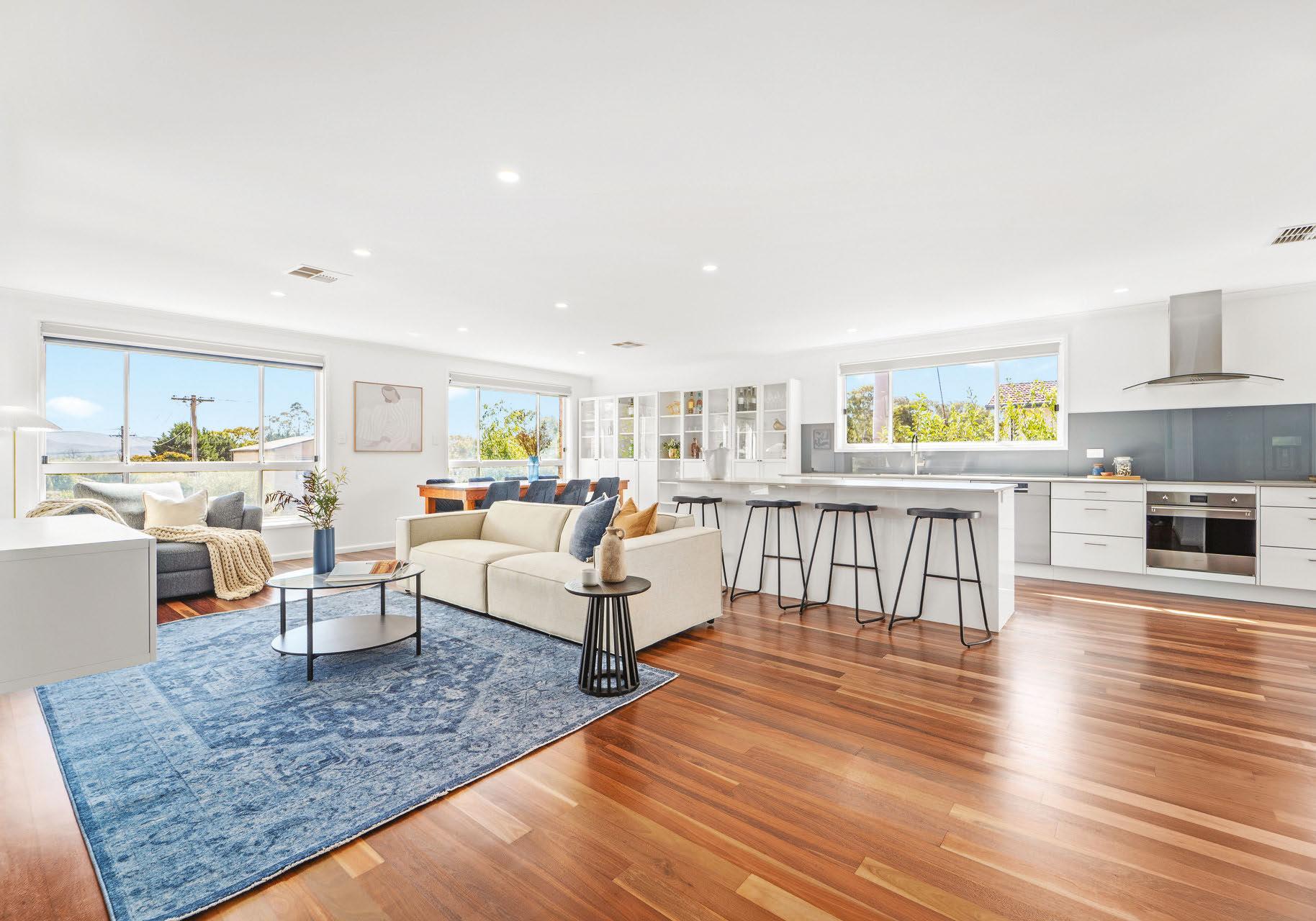“Elevated to capture Brindabella views, this rare Hughes residence pairs high-end fnishes with fexible family living and superb entertaining, all in one of Canberra’s most desired suburbs.”