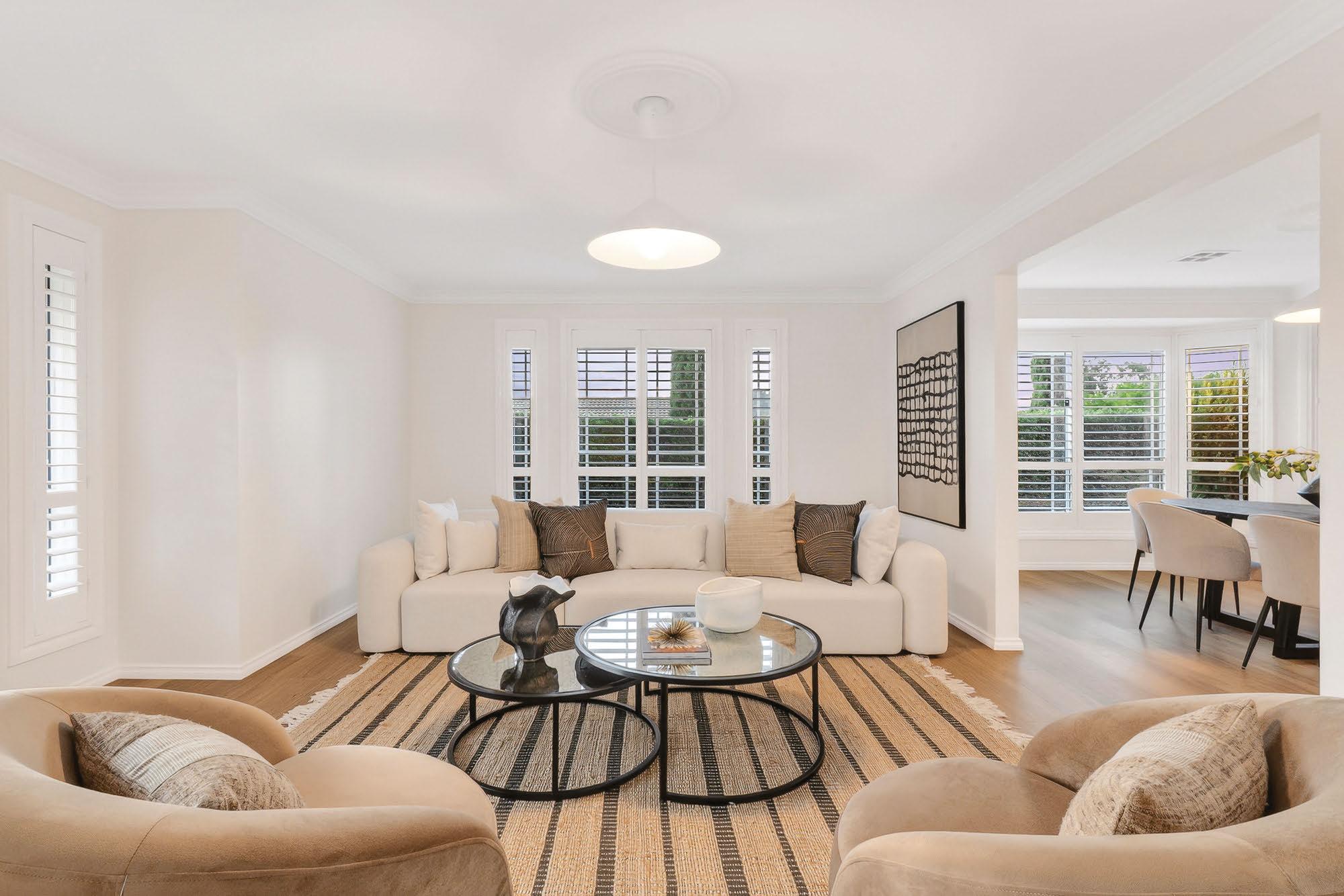 Live large in this impressive townhouse with multiple living areas, a four-car garage and two luxe main-bedroom suites with en suites and access to outdoor spaces. The sophistication continues with materials ranging from engineered timber fooring and stone benchtops to golden tapware and a glass balustrade on the open-tread staircase.