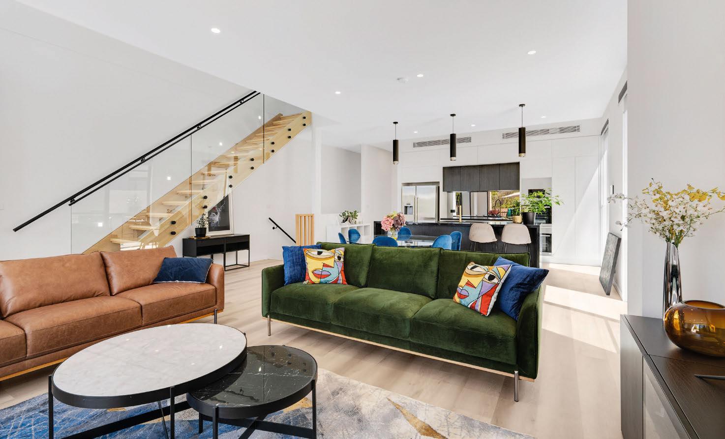 This elegant property is one of just three in a brand-new boutique development. With a large open-plan living area, downstairs guest suite, walk-in pantry and no common walls, it’ll feel more like a private house than a townhouse. Inside, spotted gum timber foors are paired with marble-look stone benchtops and custom joinery.