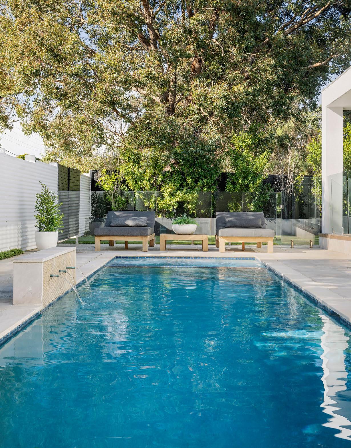 This family home is designed for enjoying an al fresco lifestyle by the azure heated pool and spa in the north-facing backyard. A covered terrace includes built-in fans, a barbecue and a fridge. The bells and whistles include a temperature-controlled wine cellar, cinema screen and underfloor heating.