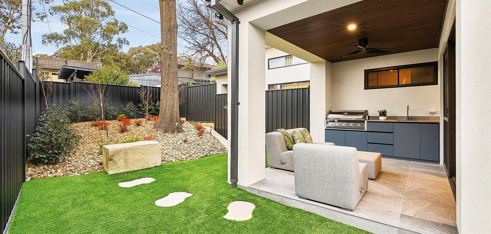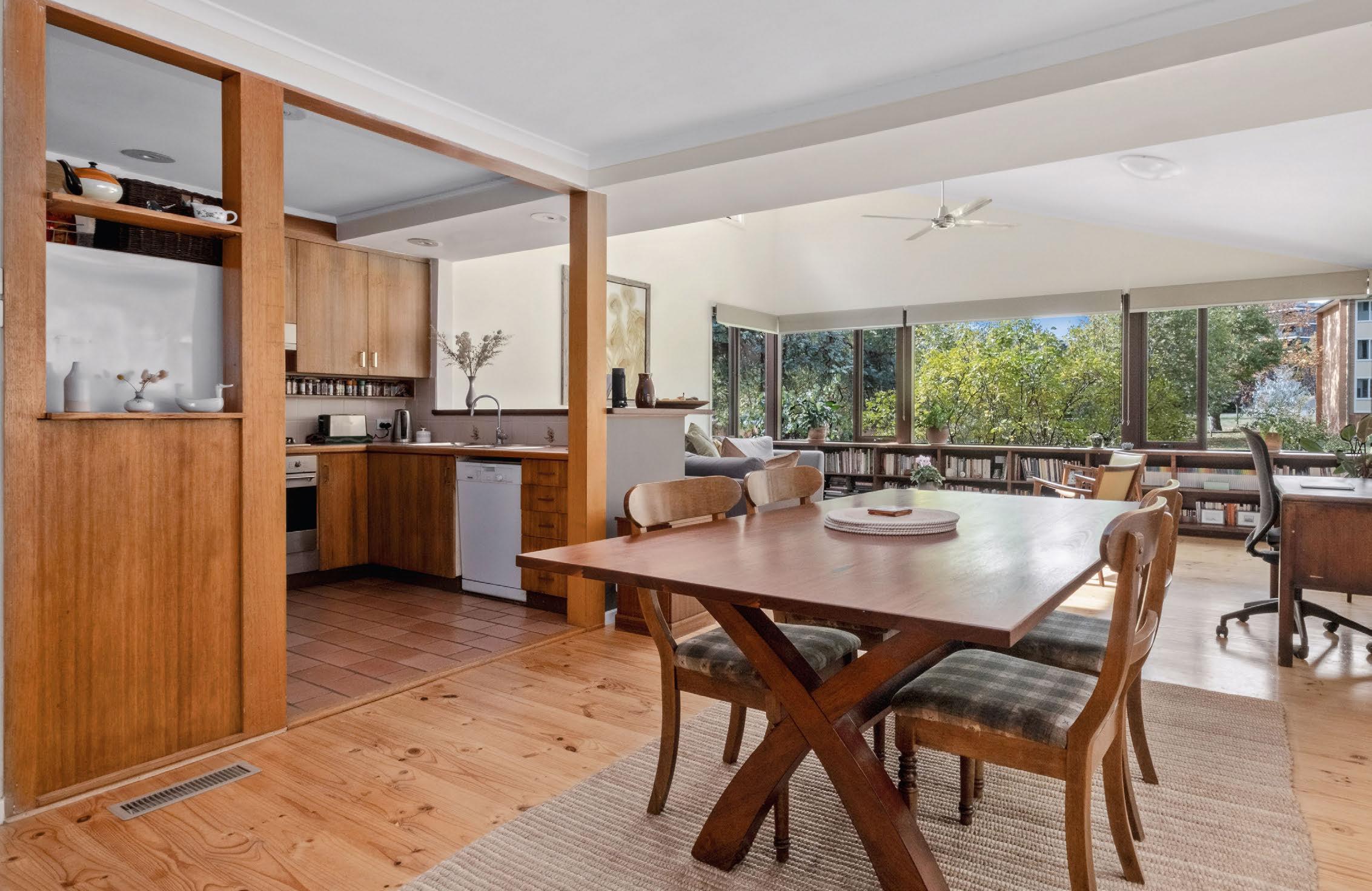 Agent: Suburbia Real Estate, Mark Larmer 0403 215 246 Recently renovated and extended, this three-bedroom charmer benefits from a private position on a quiet loop street and backing onto a reserve. The calming interiors are light-filled and well connected to the beautiful established gardens. Standout features include bamboo flooring, north-facing full-length windows, stone-topped benches in the kitchen, and a wine fridge. A covered pergola over the elevated timber deck is ideal for relaxation or entertaining.