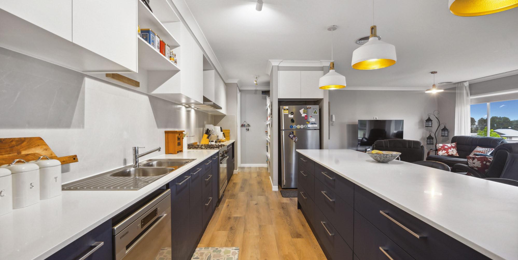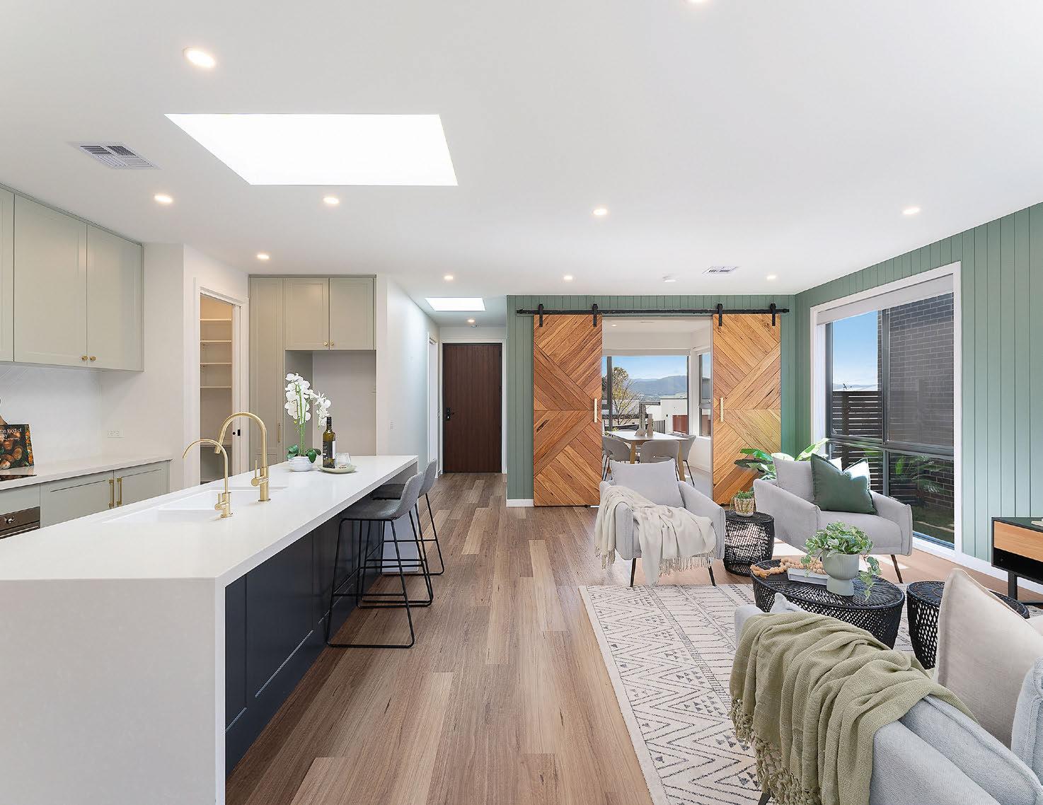Agent: Goodhaus Property, Jason Anasson 0423 821 138 This stylish four-bedroom family home is perfect for house hunters looking for a turnkey option. Across a single level you’ll find impressive features such as timber flooring, terrazzo tiles in the two bathrooms, and barn-style doors that close off the dining room. The modern kitchen makes a statement thanks to a skylight, a waterfall stone island, gold tapware and a walk-in pantry. Double glazing and a four-kilowatt solar system maximise energy-efficient living.