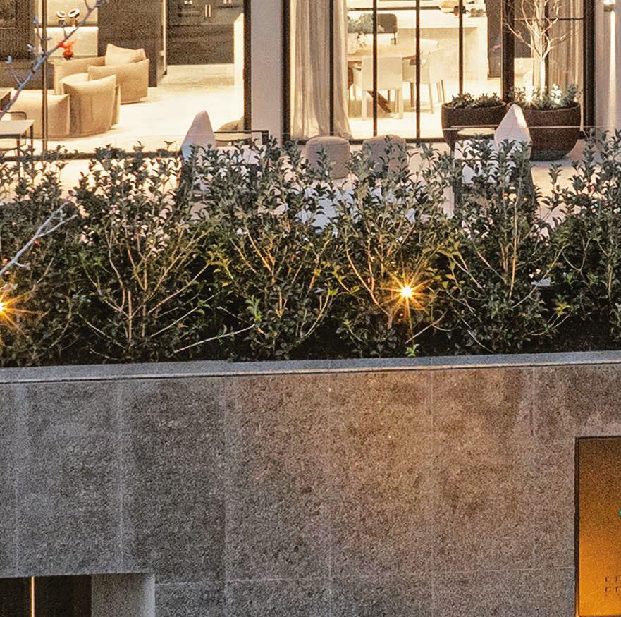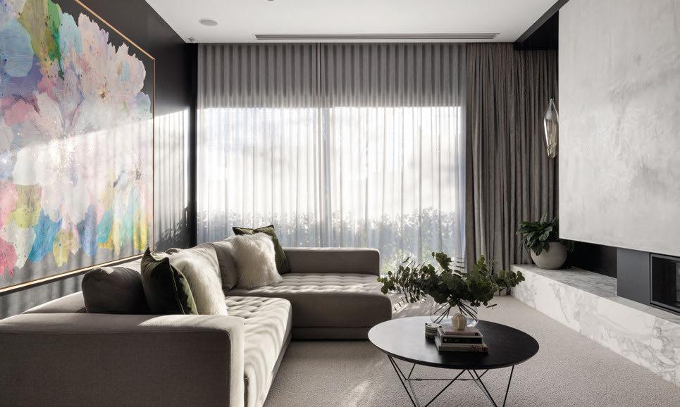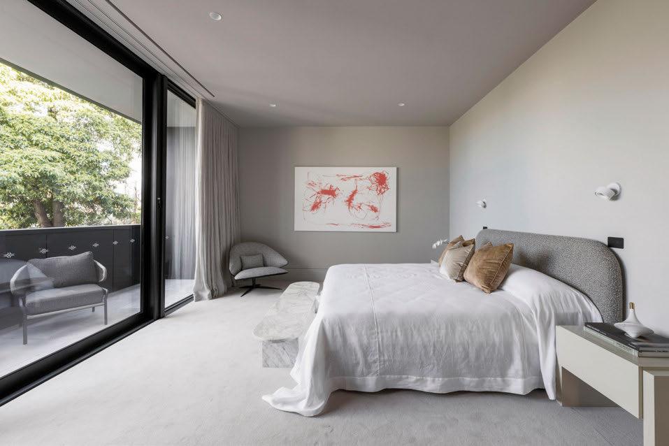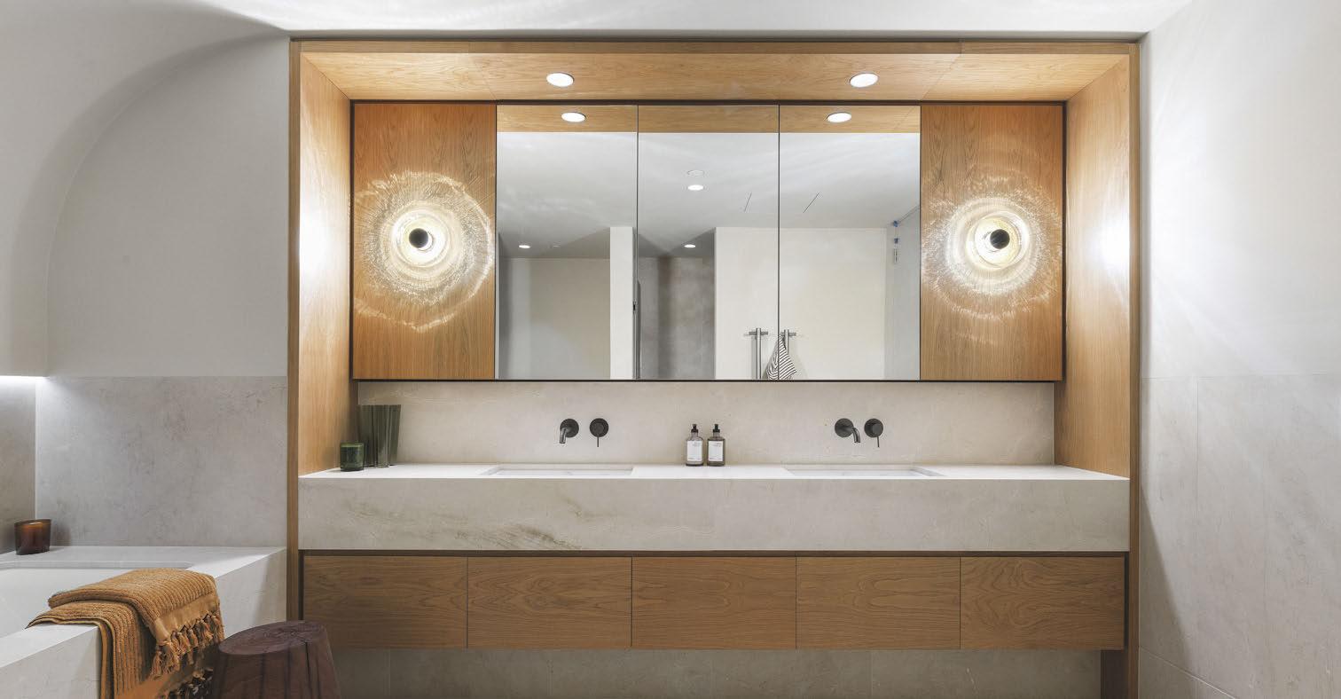 The main bedroom’s en suite has a vanity adorned with luxurious Orazia gold marble, while the dressing room offers lots of storage.