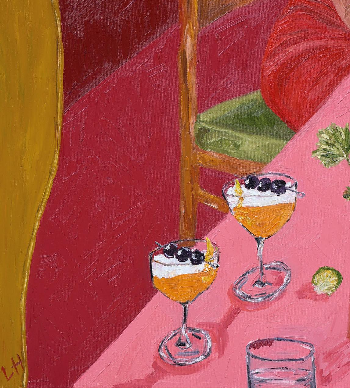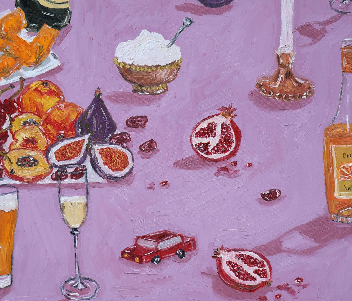 I like to apply paint really thick, and to get that movement and sculptural feel to the paint – it makes my pieces really textured and vibrant. It always feels like there’s people either in the scene or they’ve just walked out with their presence still there, like there are stains on the tablecloth or they’ve just knocked something over. I love that.