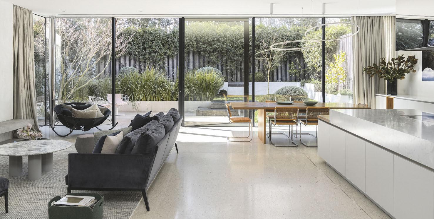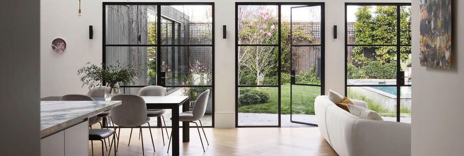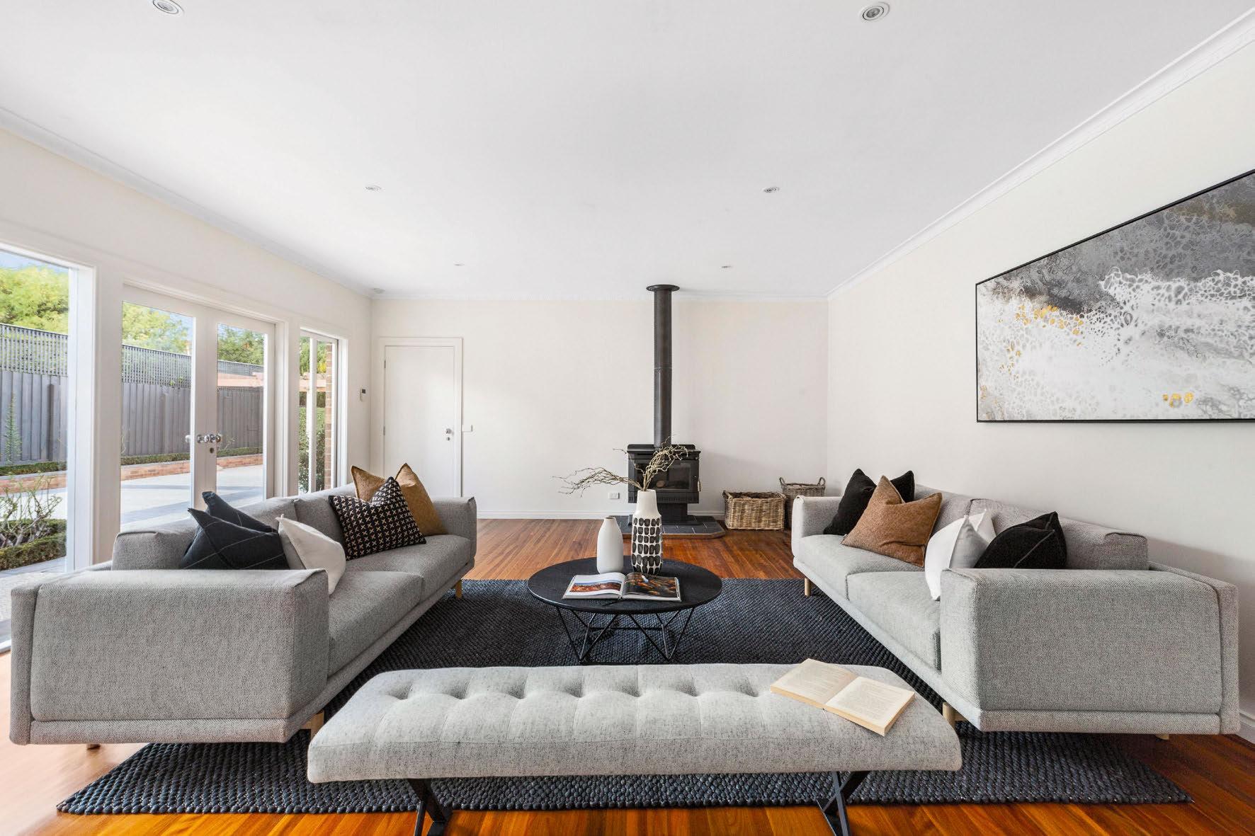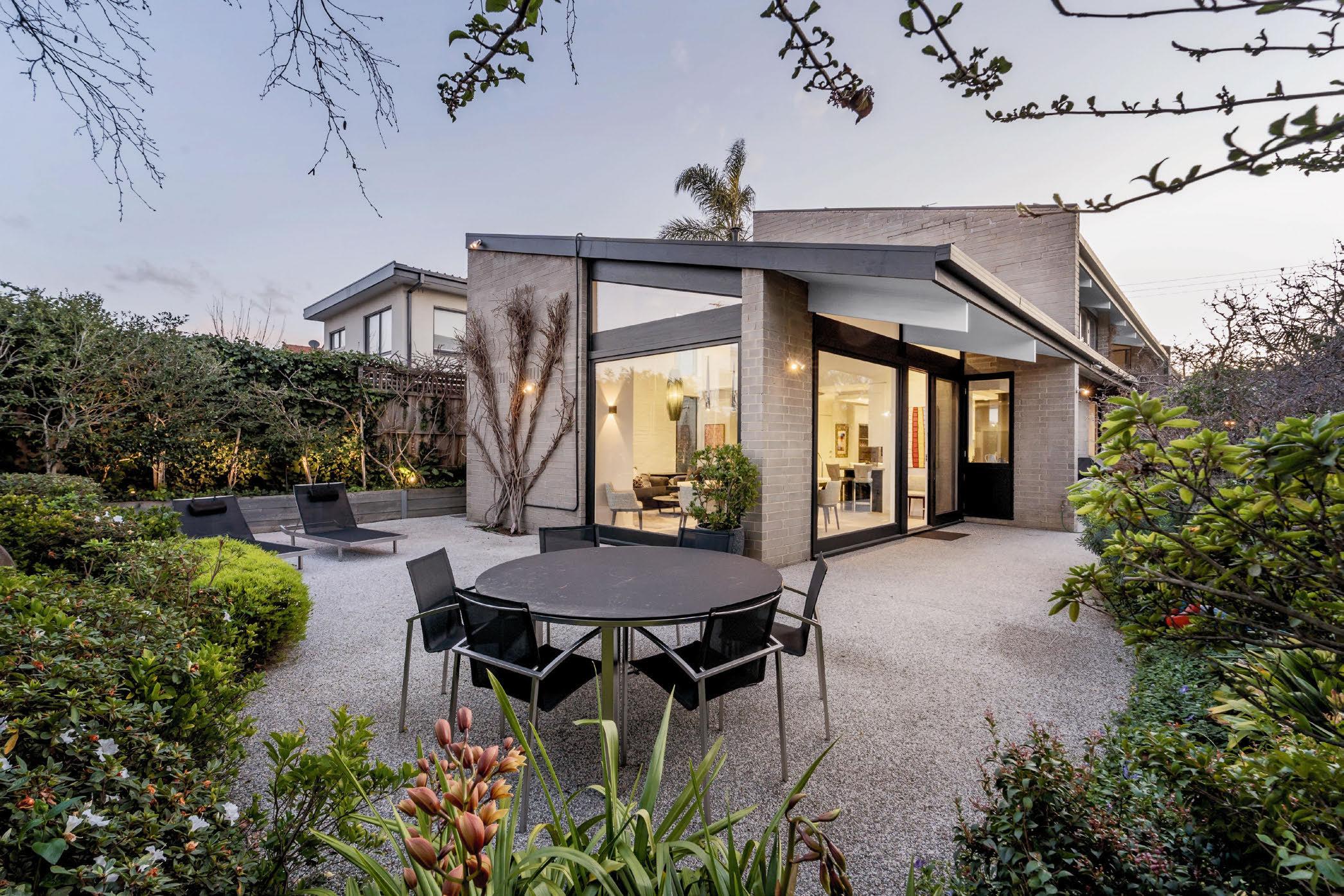 French doors, tastefully defined by black steel frames, connect the rear living area to the landscaped back garden, which is a relaxing sanctuary for the family to enjoy.