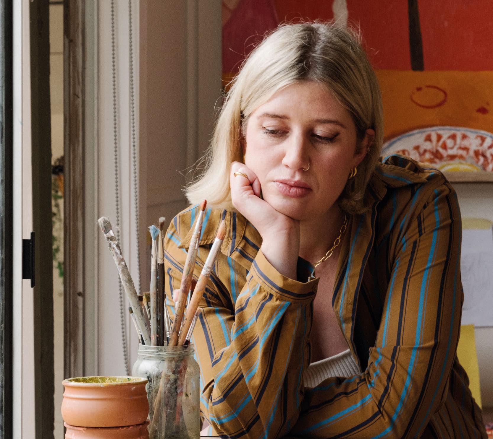 You’ve become well-known for selling your pieces via Instagram. Can you talk us through what that looks like? It’s so wild. When I first began, I’d put a painting up and it would take at least a week for it to sell. Then it was selling in a few hours, and then 10 minutes, and it just kept getting shorter and shorter. It got to the point where 20 people were commenting at the same time and people started getting angry because they thought they were the first to comment.