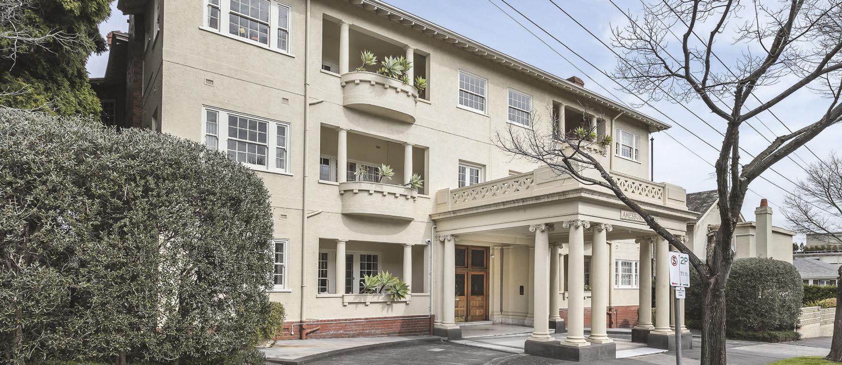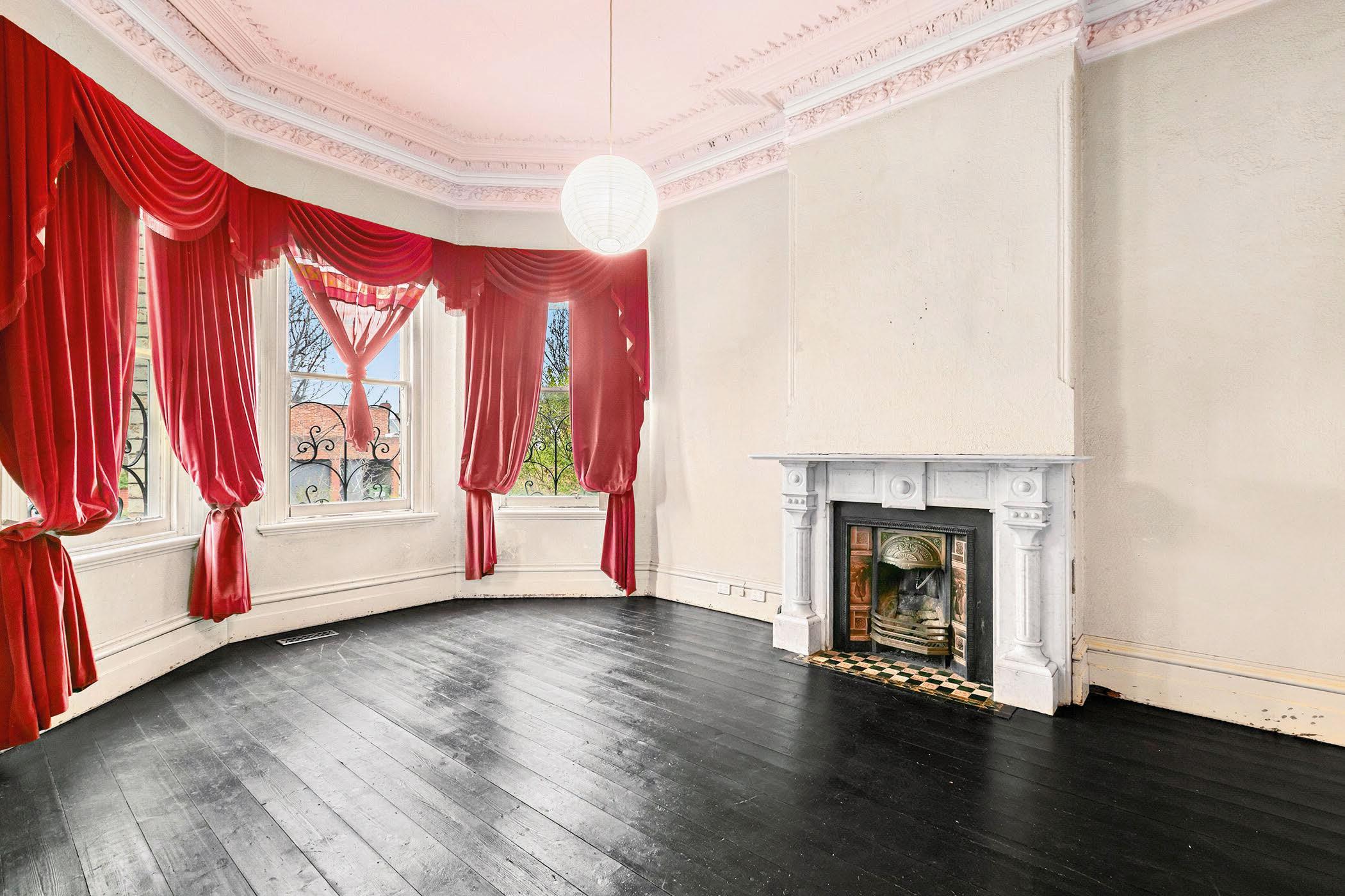 With soaring four-metre ceilings and arched windows overlooking Swan Street, this twostorey apartment within a grand Victorian building makes a remarkable split-level home. Period features include cornices, ceiling roses and polished timber floors. The bathroom and kitchen have been renovated.