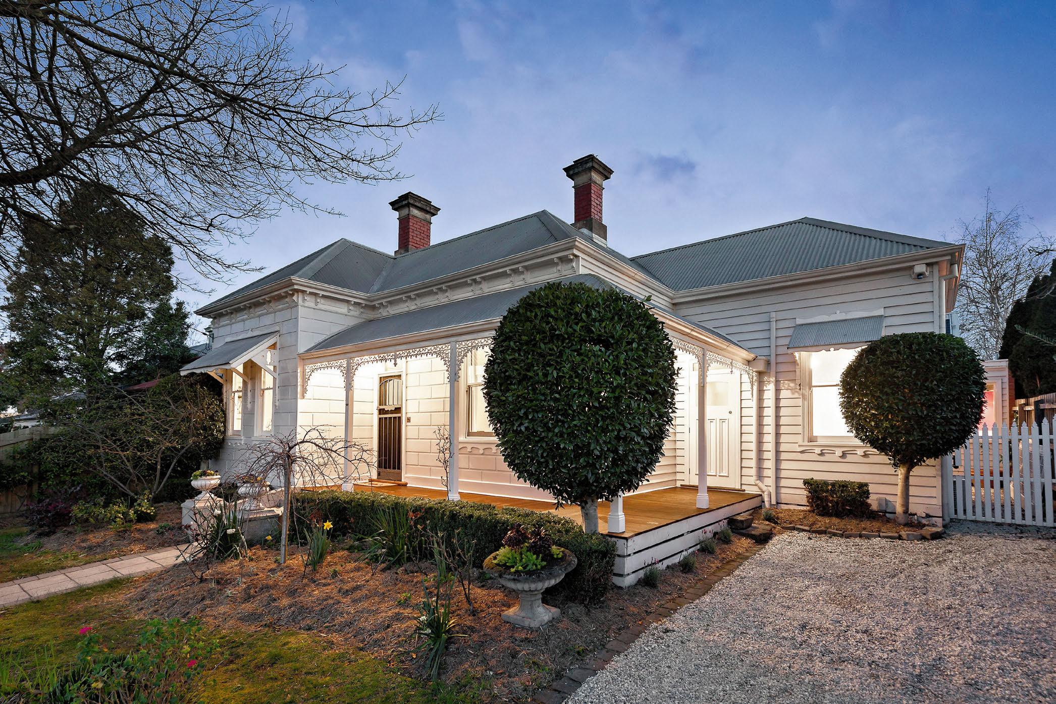 The landscaped front garden and double-fronted c1890 Victorian facade, which includes a chequerboard verandah, present a genteel frontage to the street.