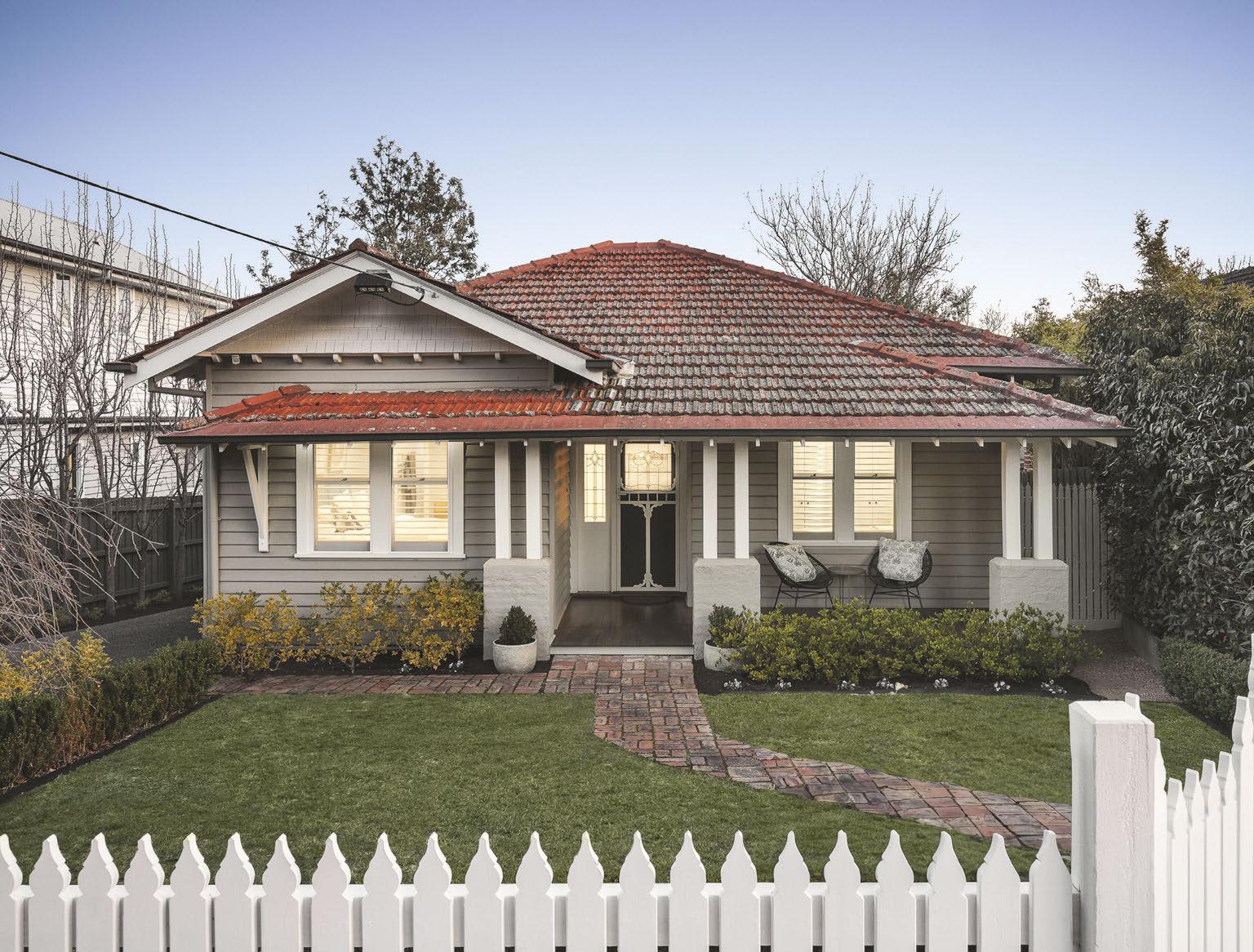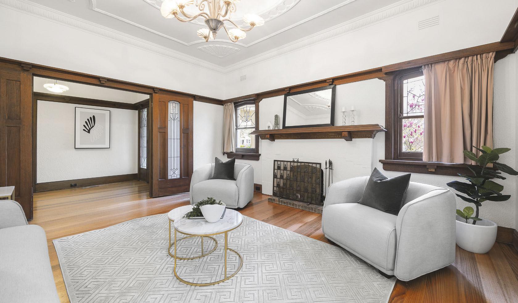 At the front of this 1920s house, a pathway surrounded by hedges leads to a charming facade, while Manchurian pear trees encircle the north-facing backyard. The interior has some period charm, with dark timber floors, leadlight windows, and an expansive hallway that leads past three bedrooms and a study to an open-plan kitchen-dining area. Extending from the living room is a retreat area, a fourth bedroom and a deck with heaters and remote sun blinds.