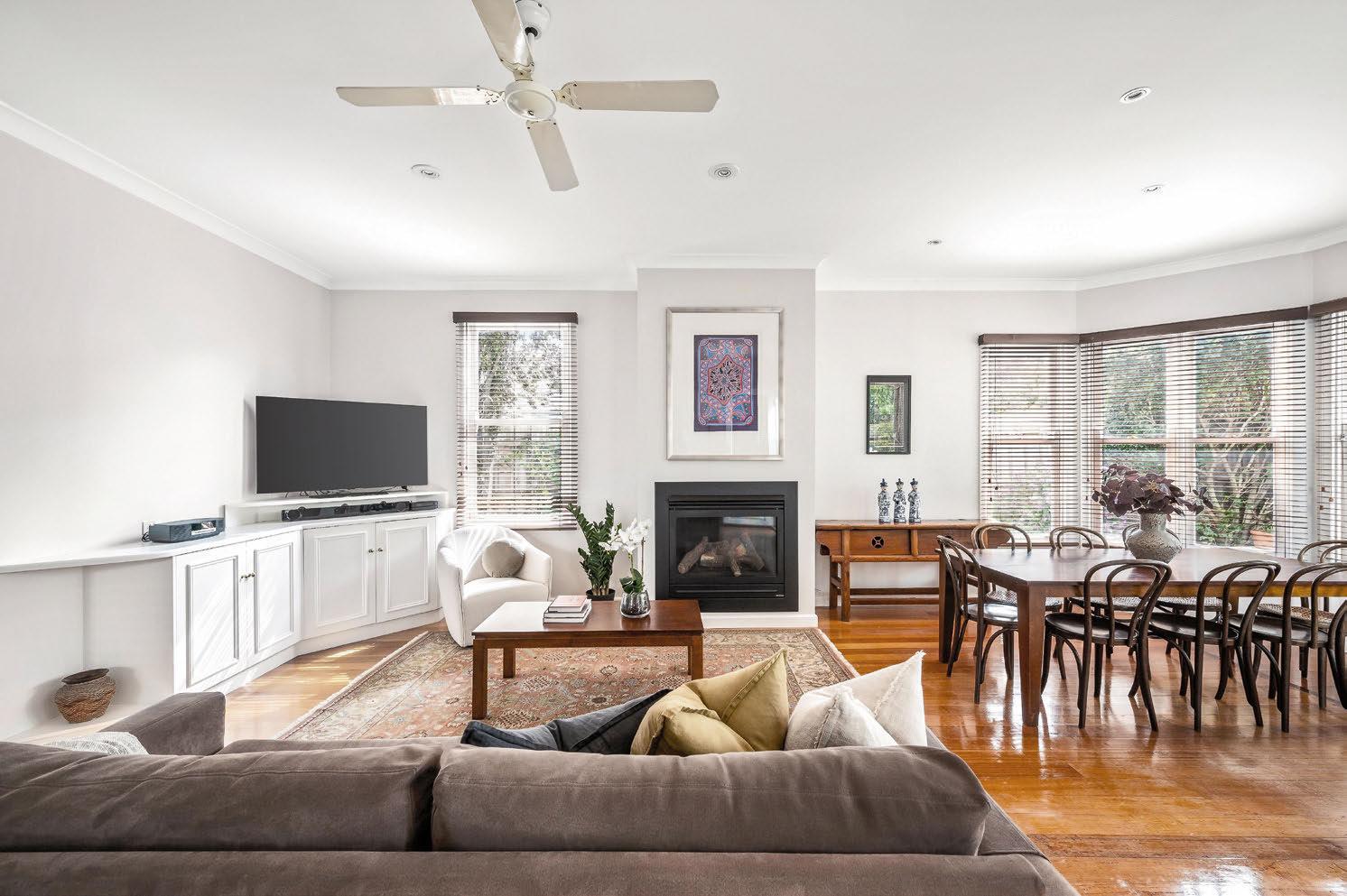This semi-detached art deco house retains many original features, including brick fireplaces, intricate ceilings and hardwood floors, but it has been updated to include a pristine kitchen with stainless steel appliances overlooking the meals area and a spacious living room. Double doors open to the back verandah and brick-paved courtyard.