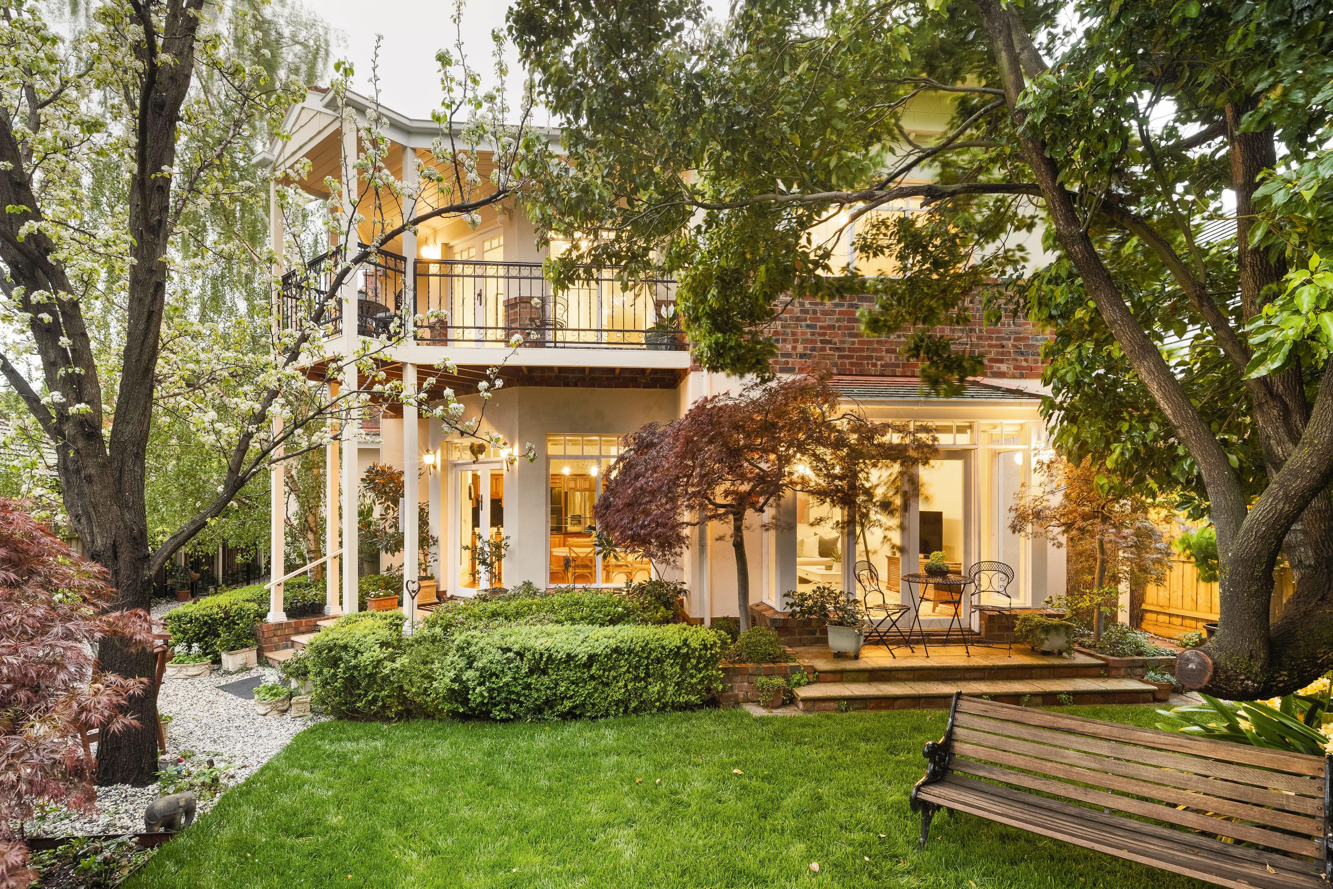 Wrapped within stunning Mediterranean-inspired gardens, this magnificent two storey residence with double garage showcases five bedrooms, four bathrooms, a study and a wealth of luxurious amenities, including multiple living areas, sublime kitchen and an entertainer's garden with a swimming pool. In a coveted setting near Hawksburn Village, trams, Hawksburn Station and reputable schools, this impeccable family home is truly exceptional. 22-24 Howitt Street, South Yarra .