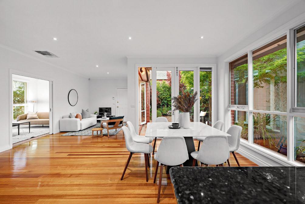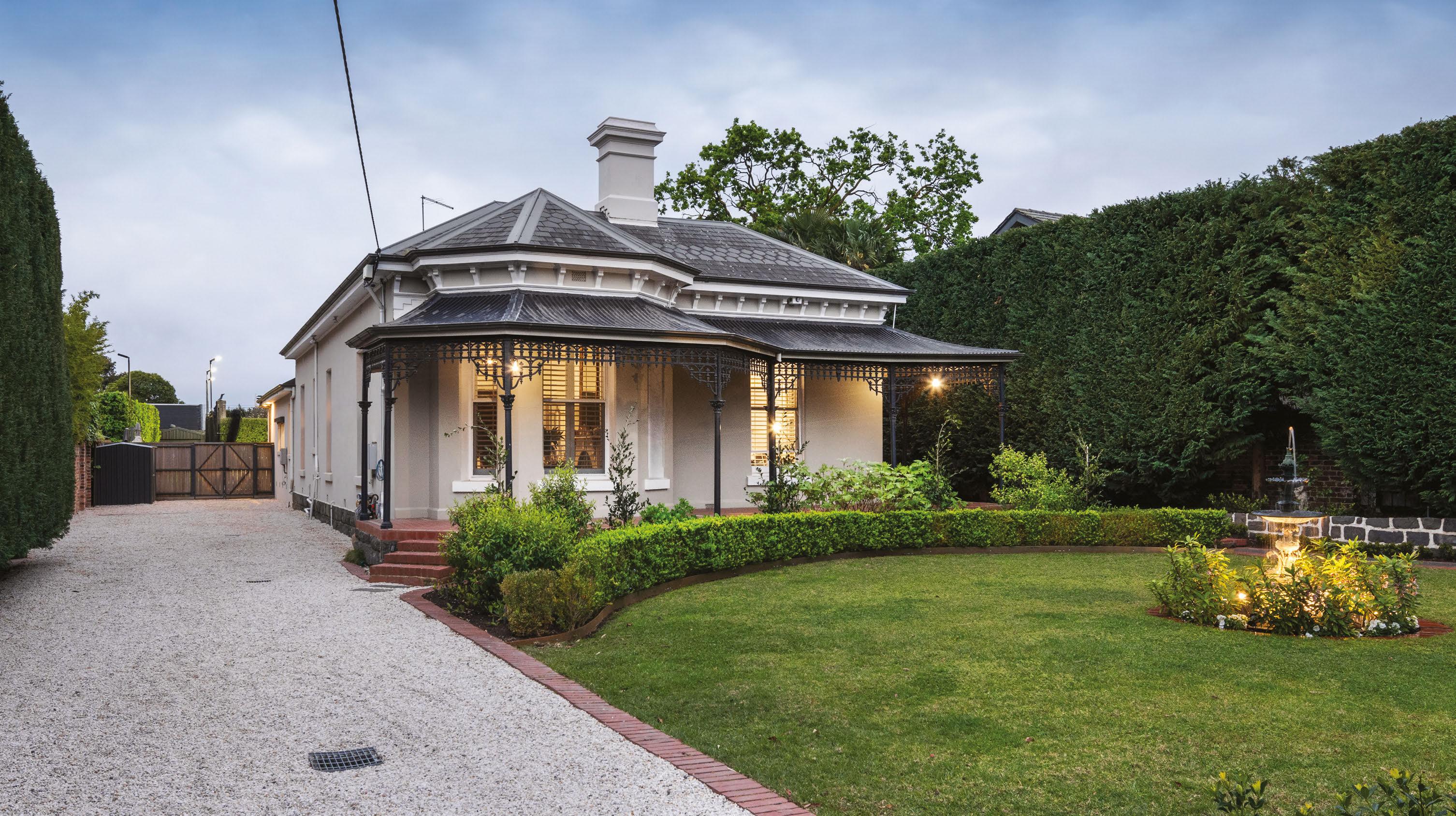 This Victorian house is near the beach, Albert Park Lake and Bridport Street’s cafes and shops. The home features an extension but maintains some of its period charm in the high ceilings and open fireplaces. The main bedroom has an en suite and walk-in wardrobe and overlooks the garden.