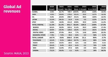 The market seems to maintain this growth. According to the consulting firm MAGMA, advertising investment will grow in 70 markets monitored by this consultancy company, which recorded above-average growth, including the US (+25%), the UK (+34%), Brazil (+30%), Canada (+27%) and Australia (+23%), while China (+17%) and India (+14%) experienced below-average growth.