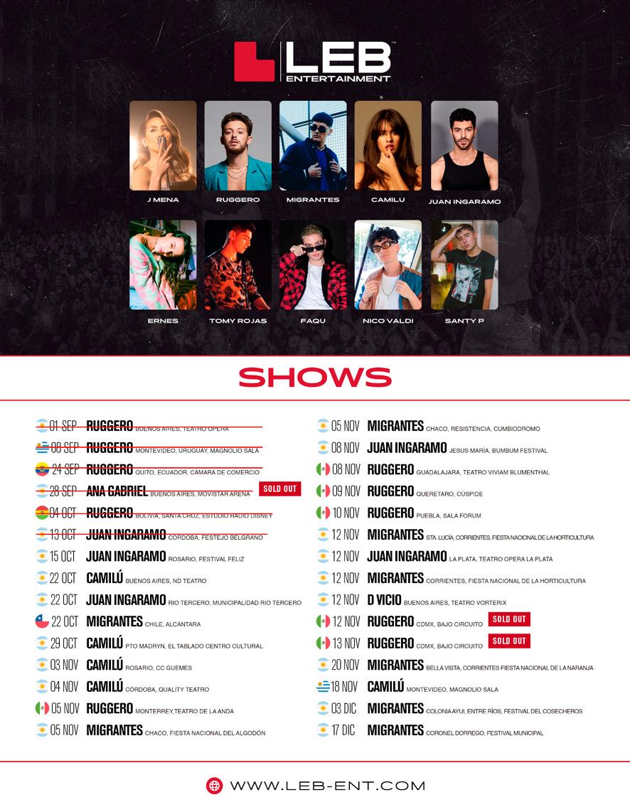 EB Producciones tiene en octubre tiene las dos fechas sold out de Aitana el 19 y 20, además de las presentaciones de la española en Córdoba y Montevideo. A su vez se prepara en diciembre para el primer show en el Luna Park de Ángela Leiva.