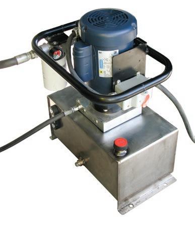 Choose the quiet hydraulic pump that best fits your operation; Electric or Gas. The 2 horsepower Electric Pump is set to pump 1.5 gallons/minute at 1000 psi.