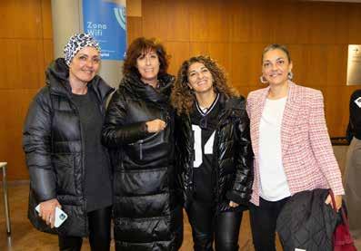 L’Elena Zamora llueix una granota en color granat que estilitza la seva silueta. Ho combina amb una jaqueta negra, creant un contrast clàssic. La Laura Fenollar vesteix amb un top negre amb brillants, que aporta textura i reflexos, creant un efecte visual cridaner. La Mònica Badia opta per un conjunt negre elegant combinat amb una americana en color verd oliva clar. I la Meritxell Cremades, destaca amb una jaqueta llarga en color rosa, que aporta un toc de color càlid i femení.