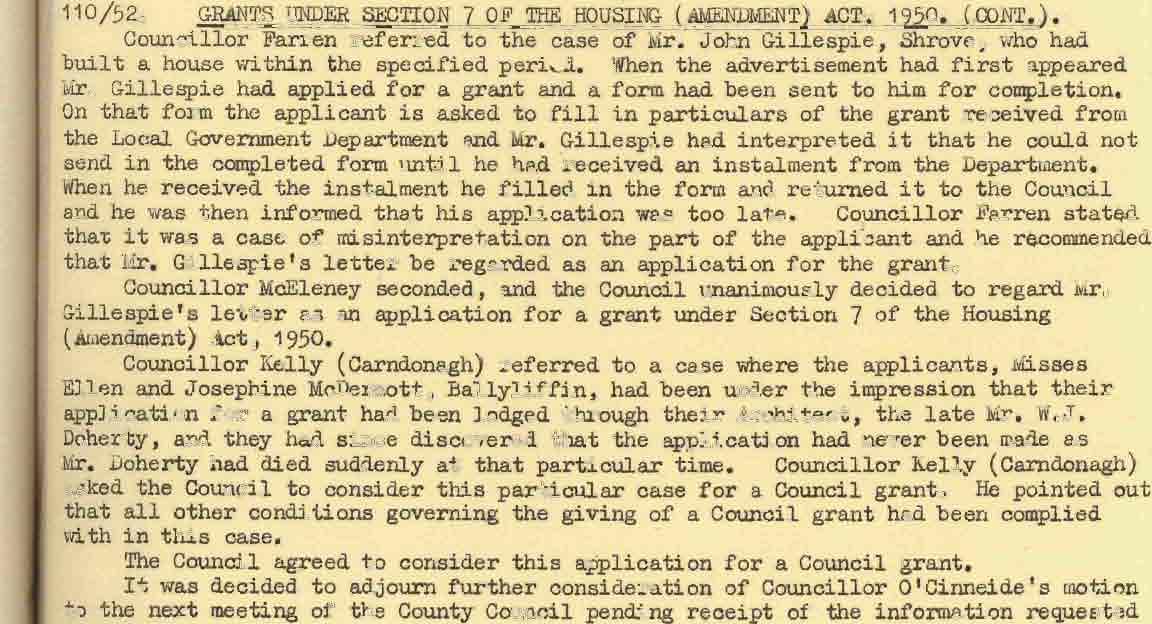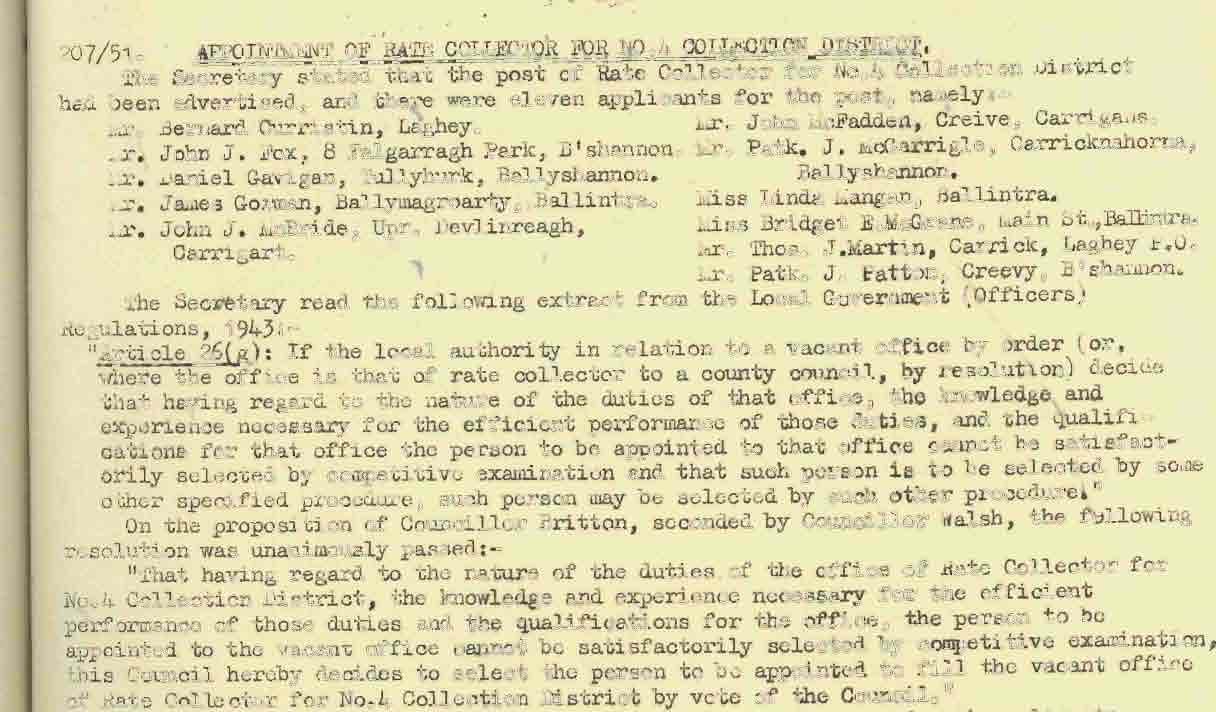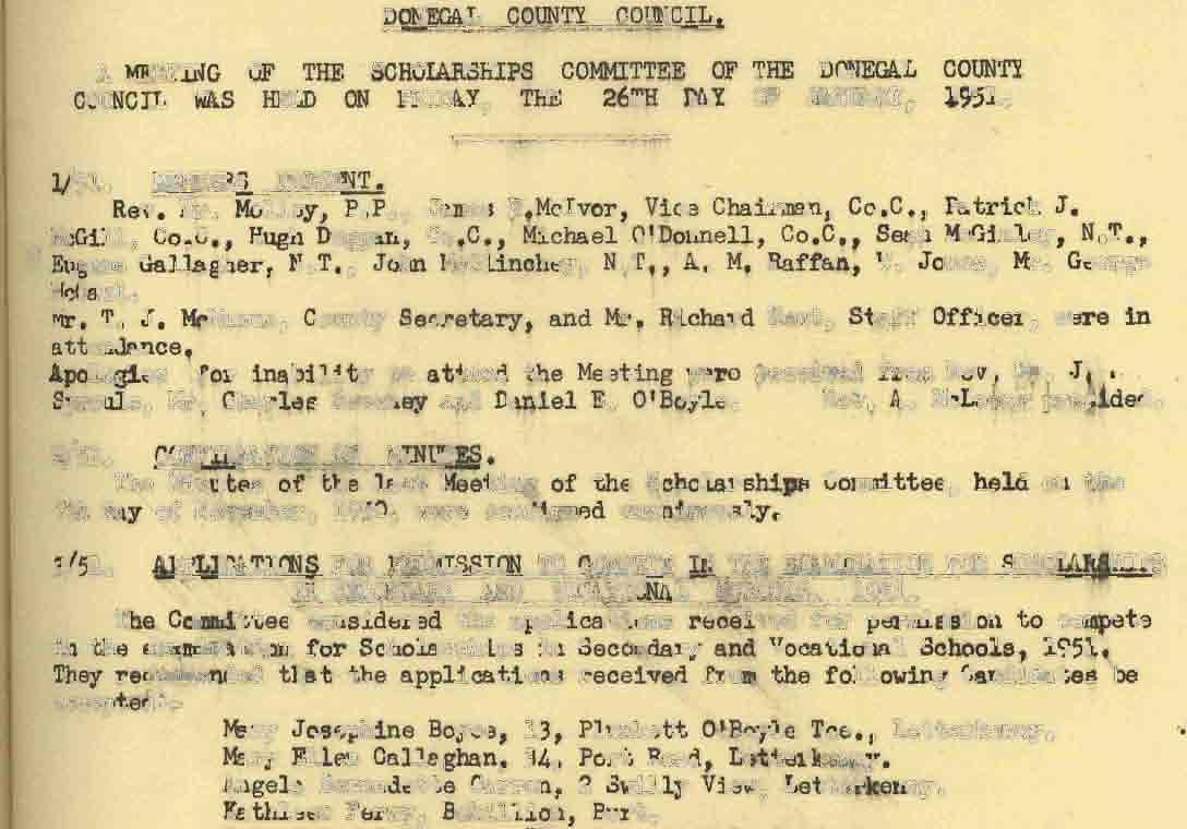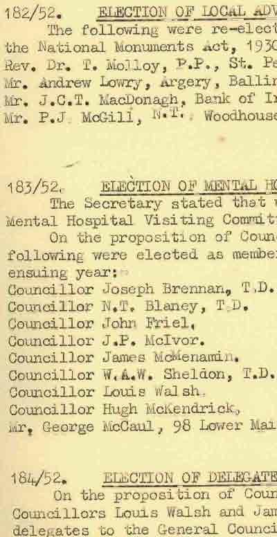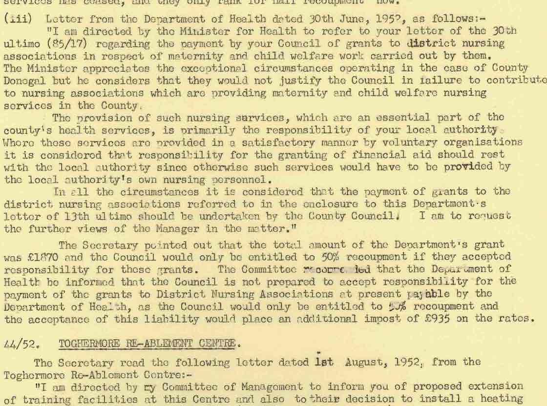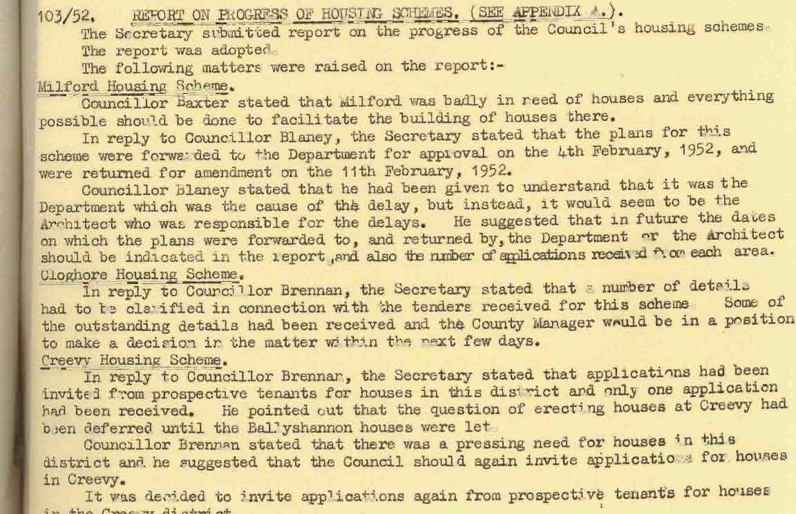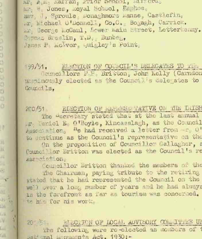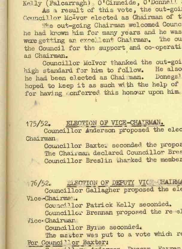 Donegal County Council Minutes, 1951 - 1952