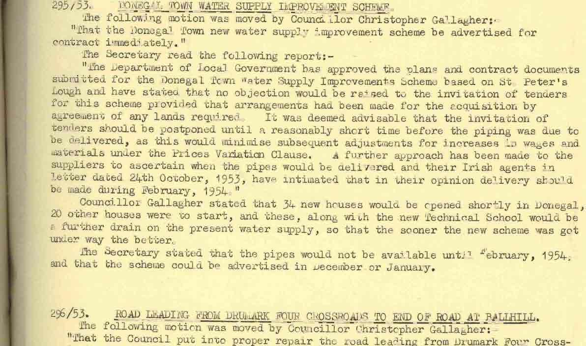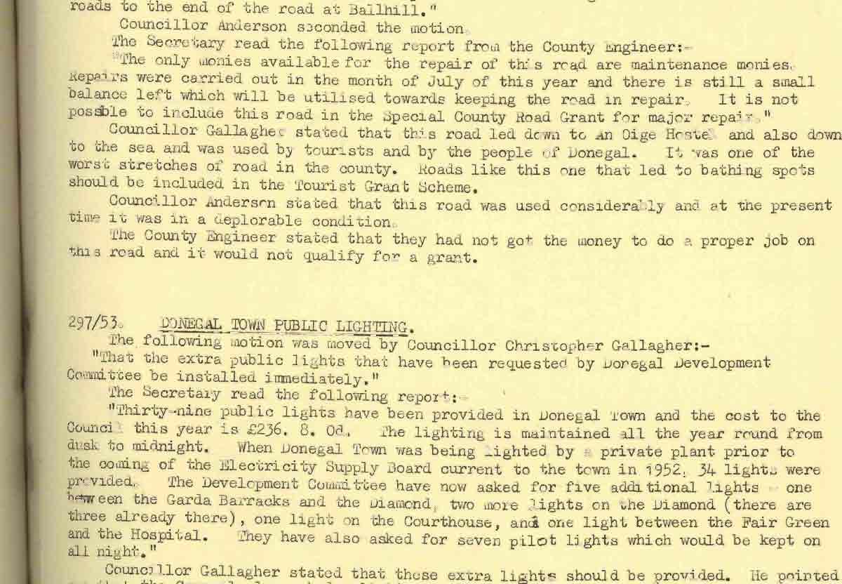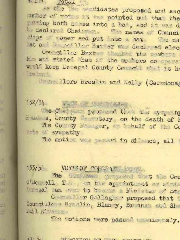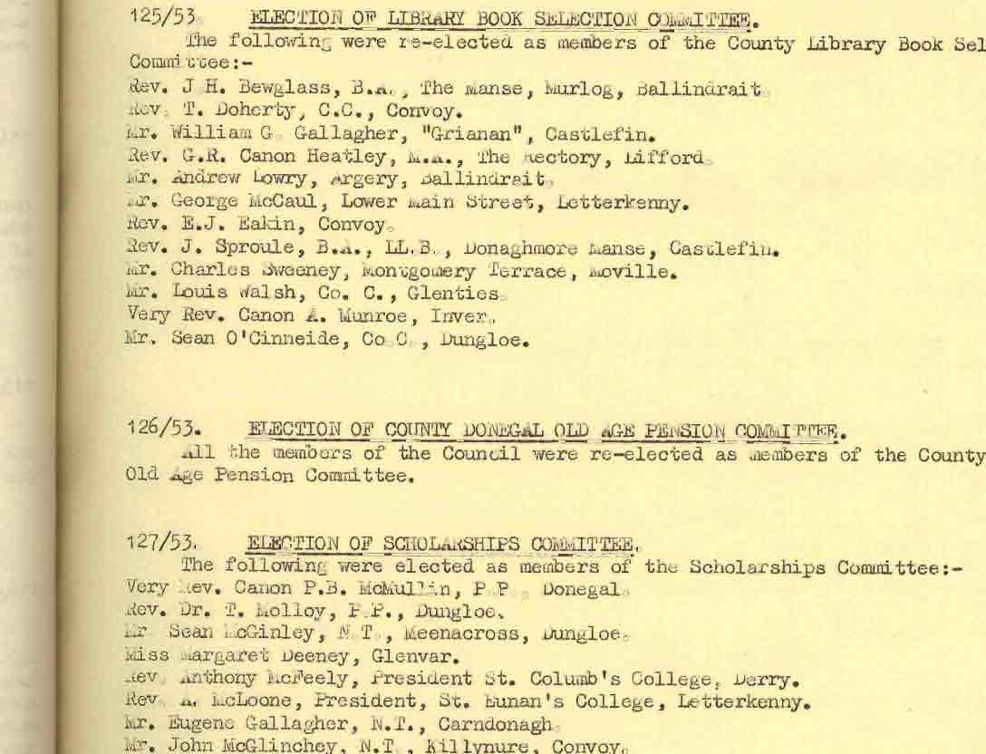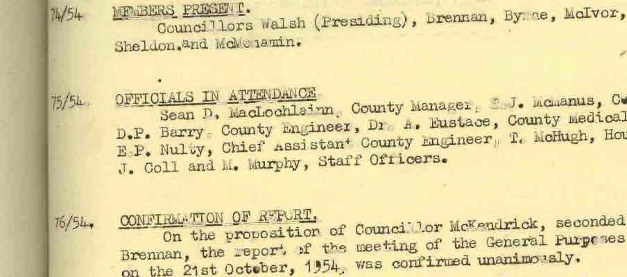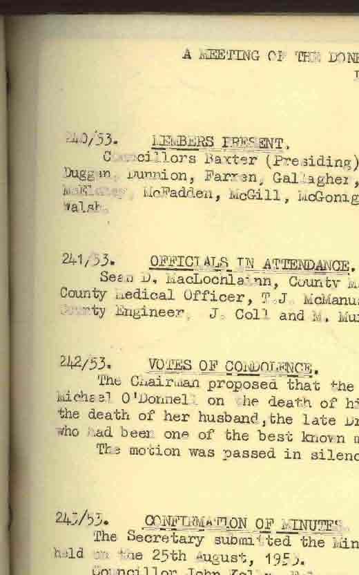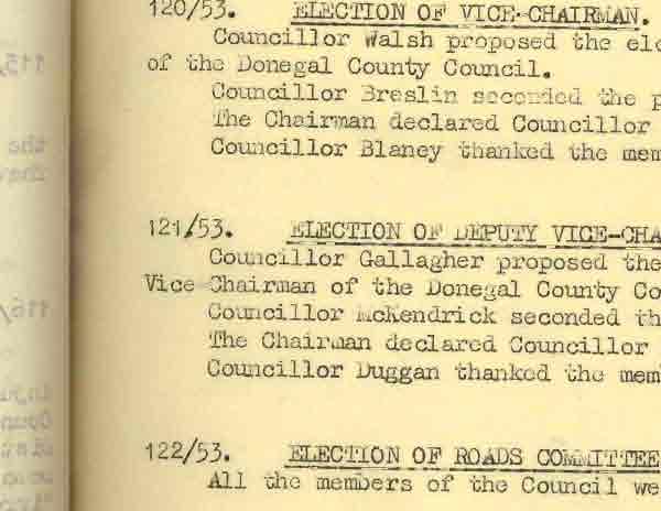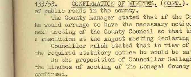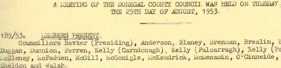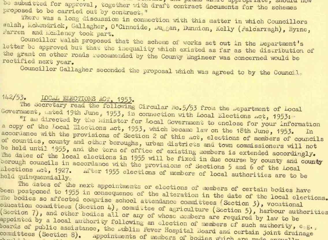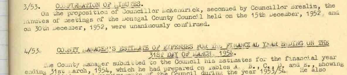Donegal County Council Minutes, 1953 - 1954